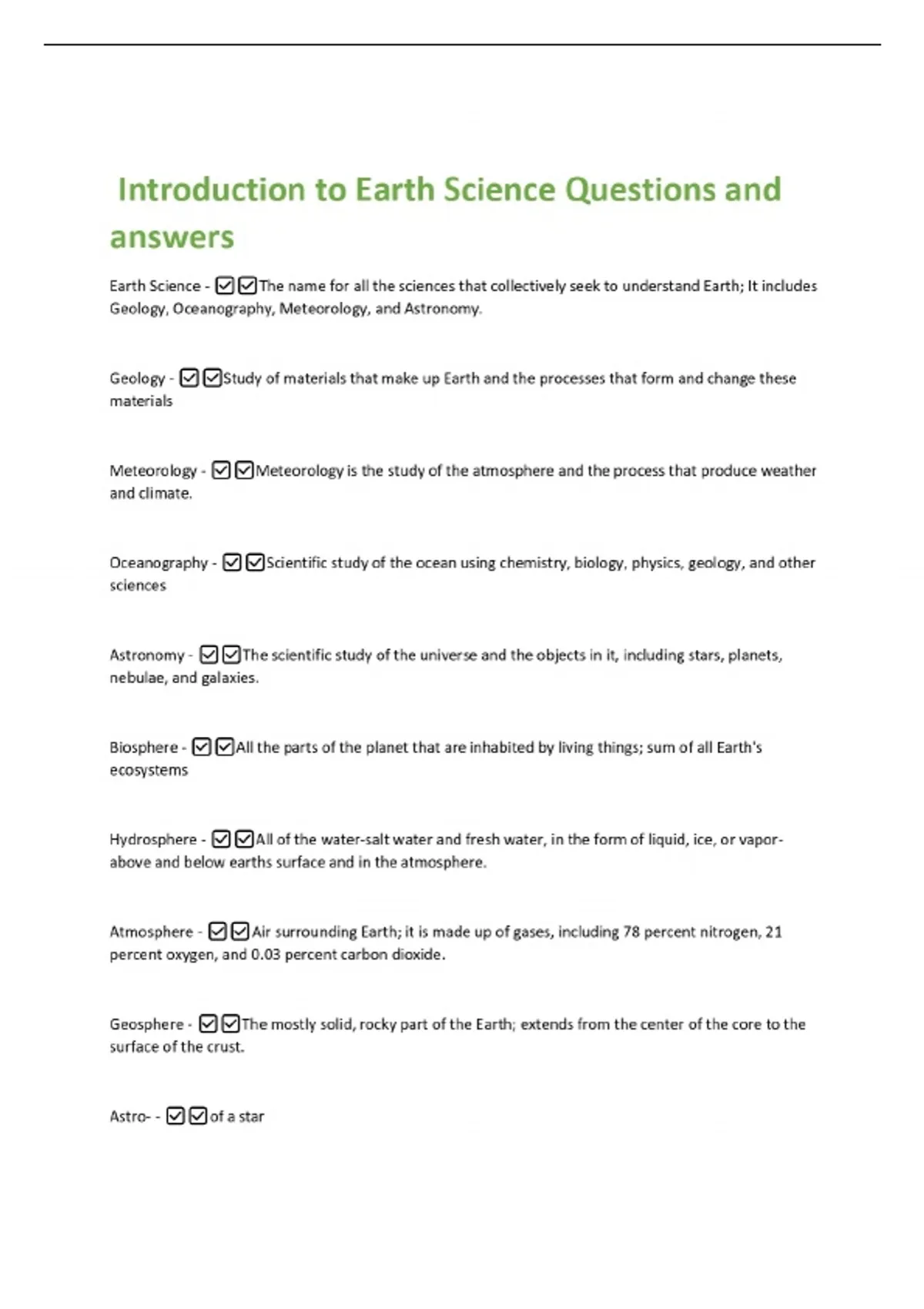 Introduction to Earth Science Questions and answers