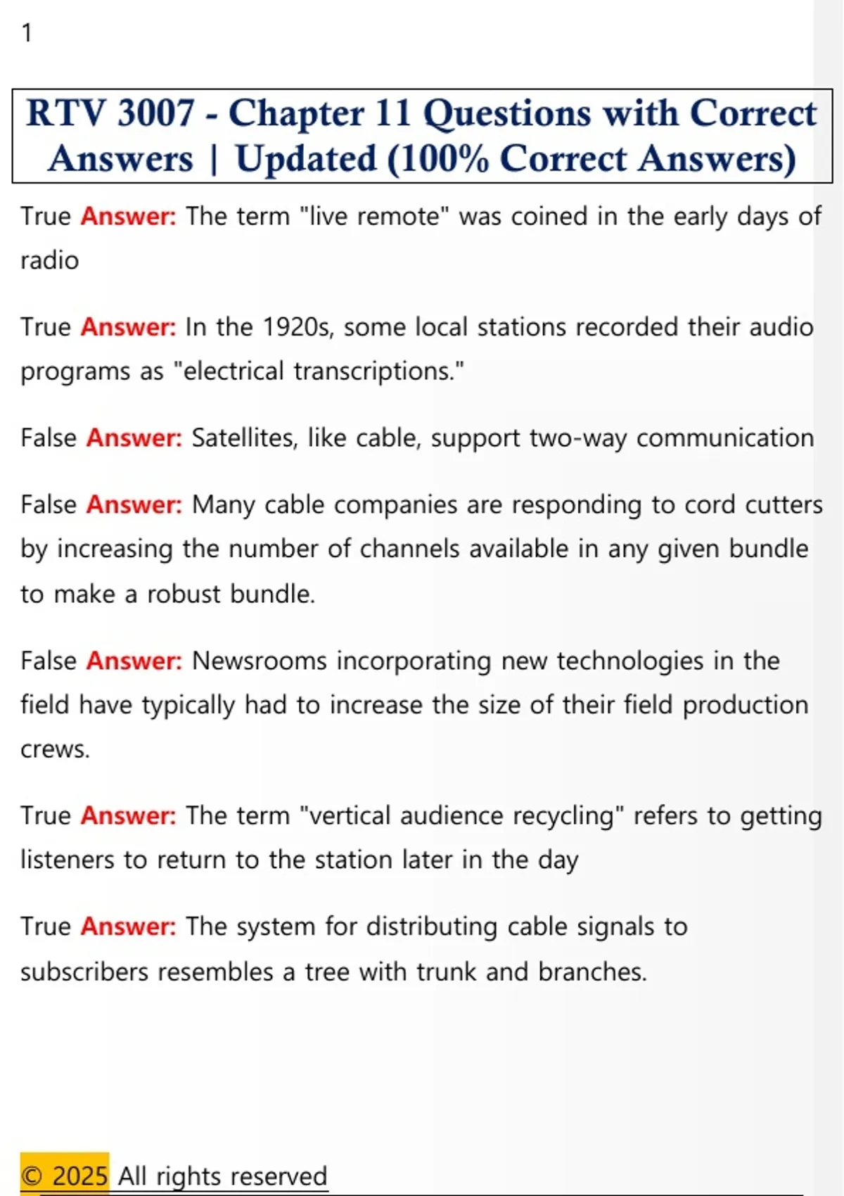 RTV 3007 - Chapter 11 Questions with Correct