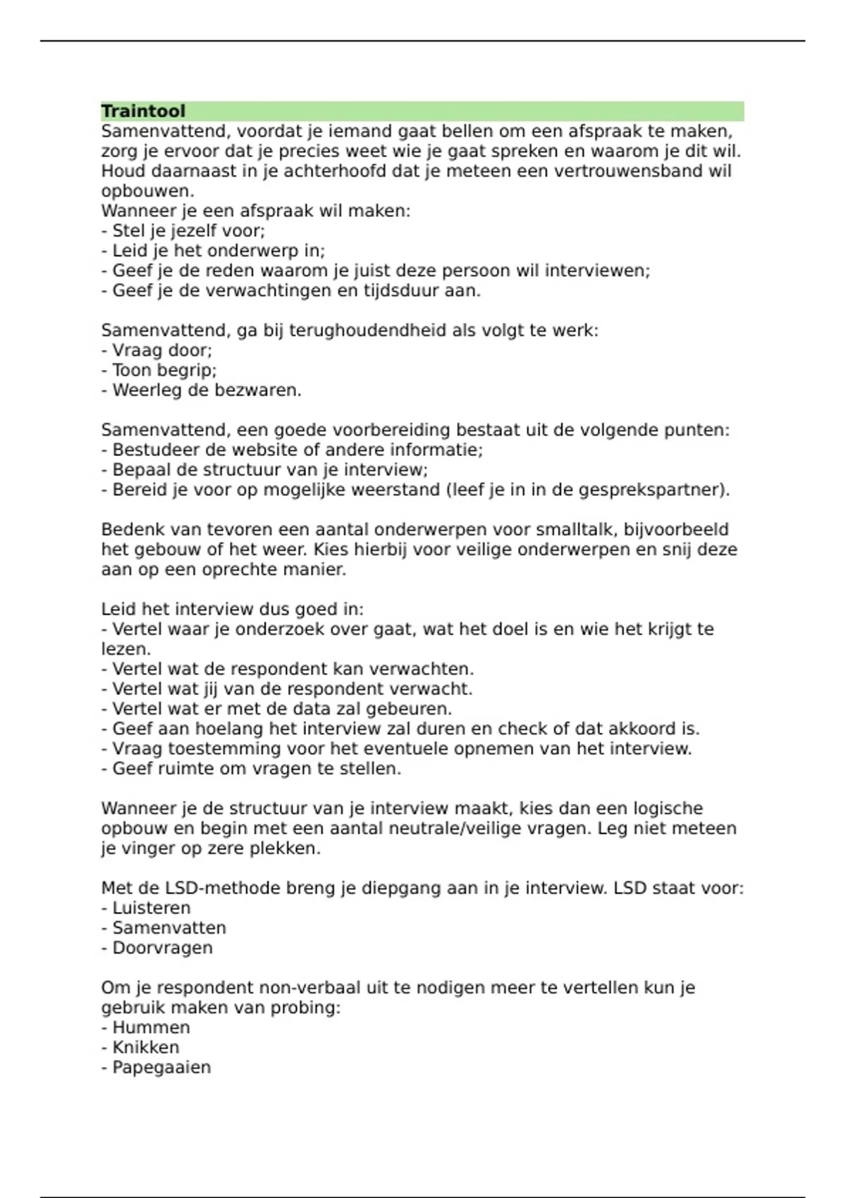 het vertrouwen van je respondent gewonnen hebben. Daarnaast kun je het