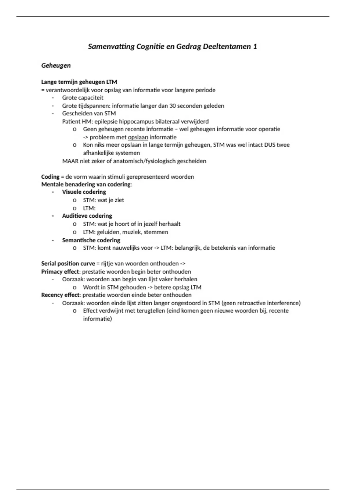 Samenvatting Cognitie en Gedrag Deeltentamen 1