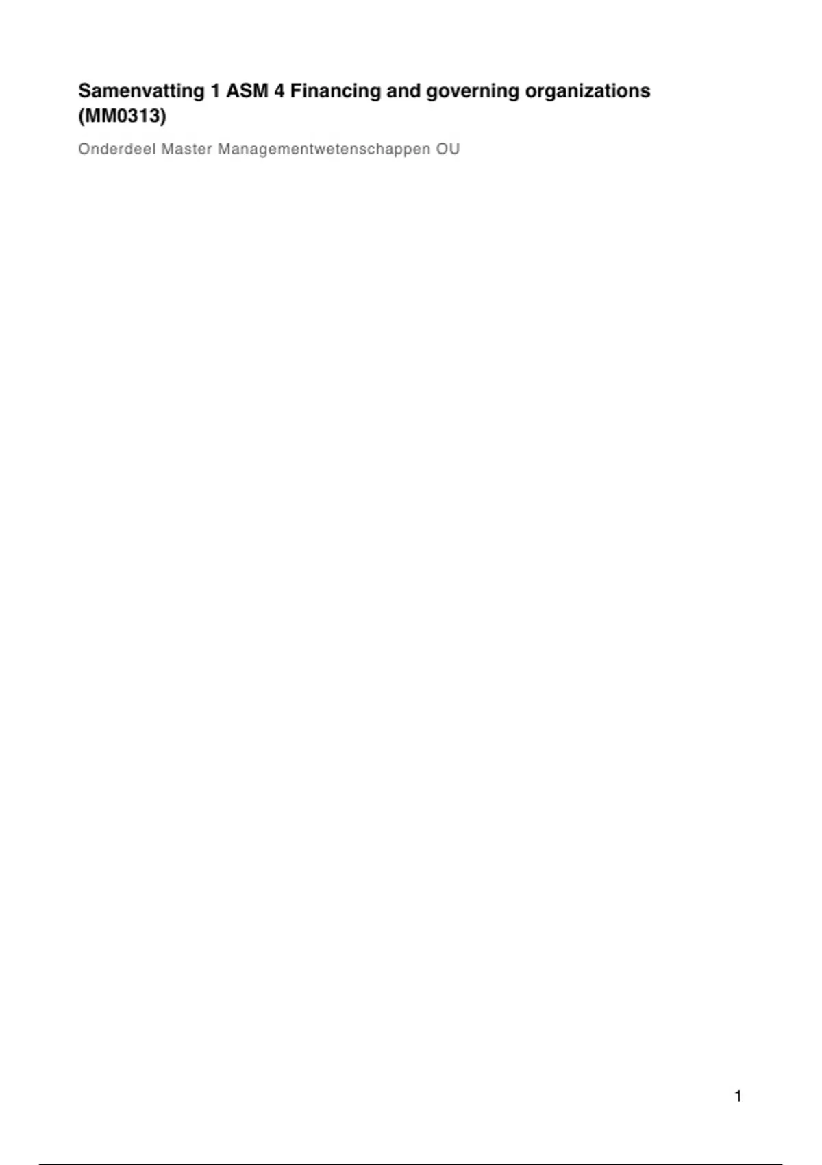 Samenvatting 1 ASM 4 Financing and governing organizations