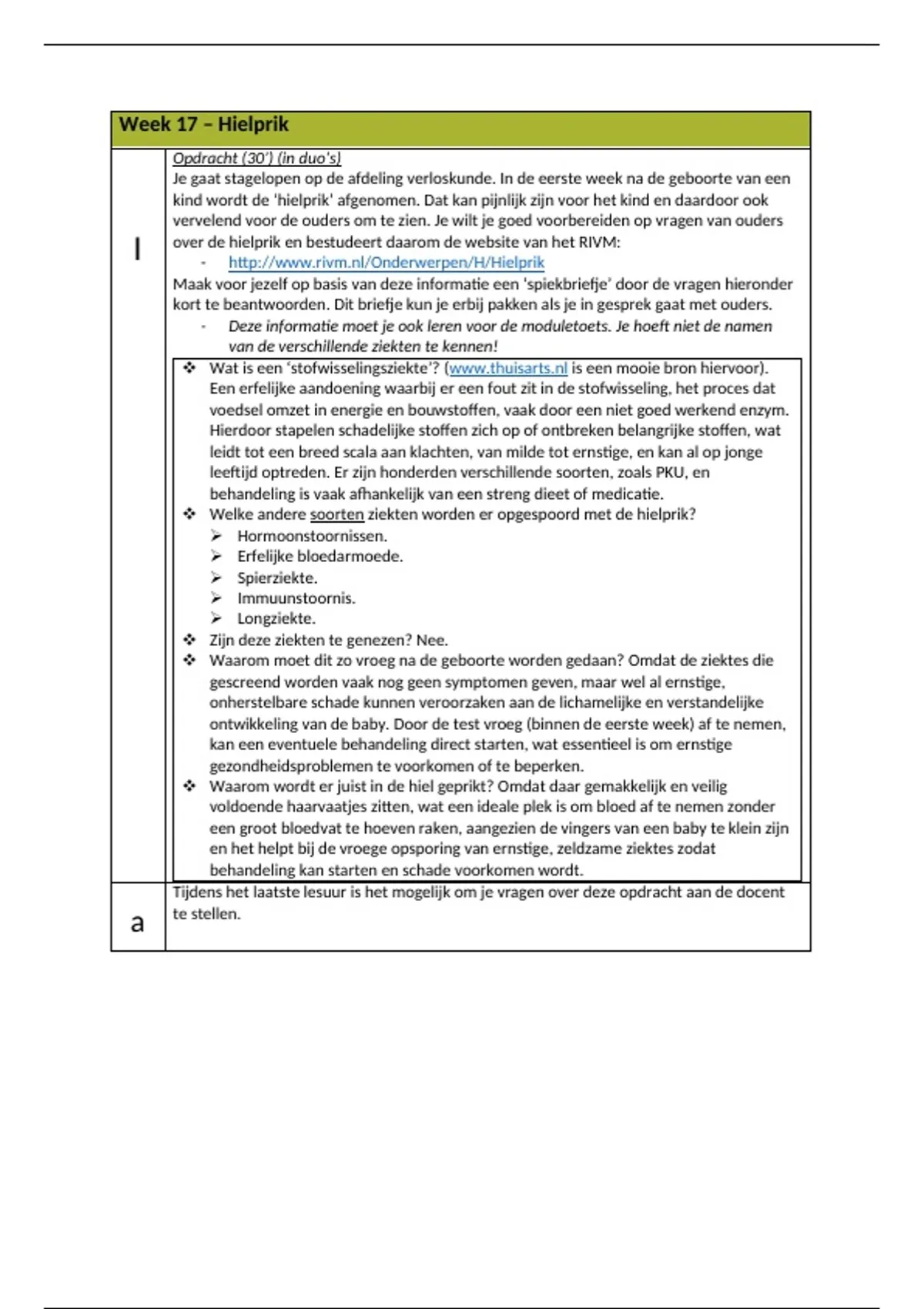 Je gaat stagelopen op de afdeling verloskunde. In de eerste week na de geboorte van een