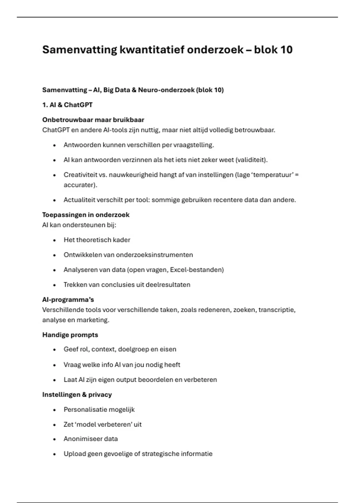 Samenvatting – AI, Big Data & Neuro-onderzoek (blok 10)