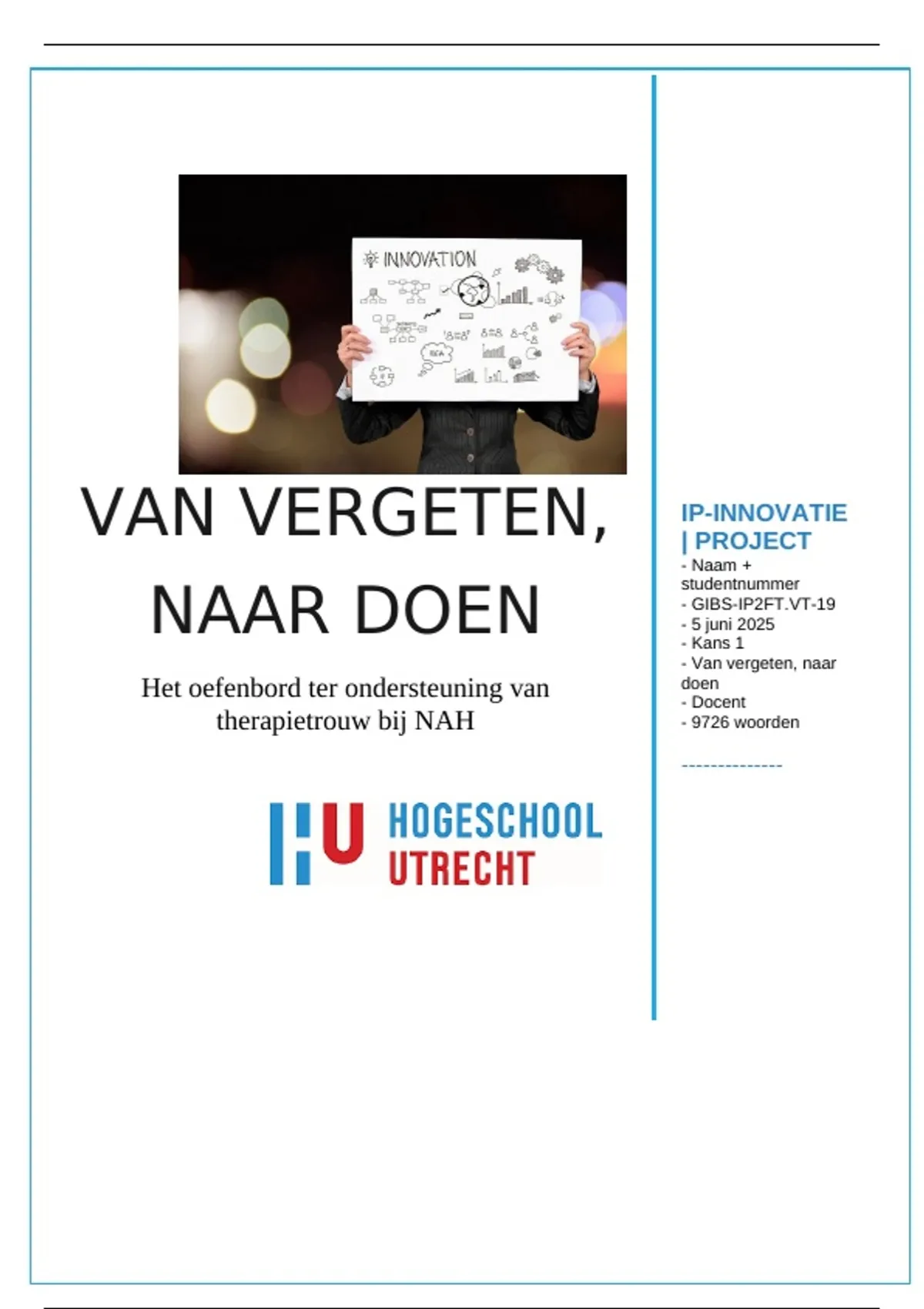 Naam + studentnummer | Van vergeten, naar doen | Hogeschool Utrecht