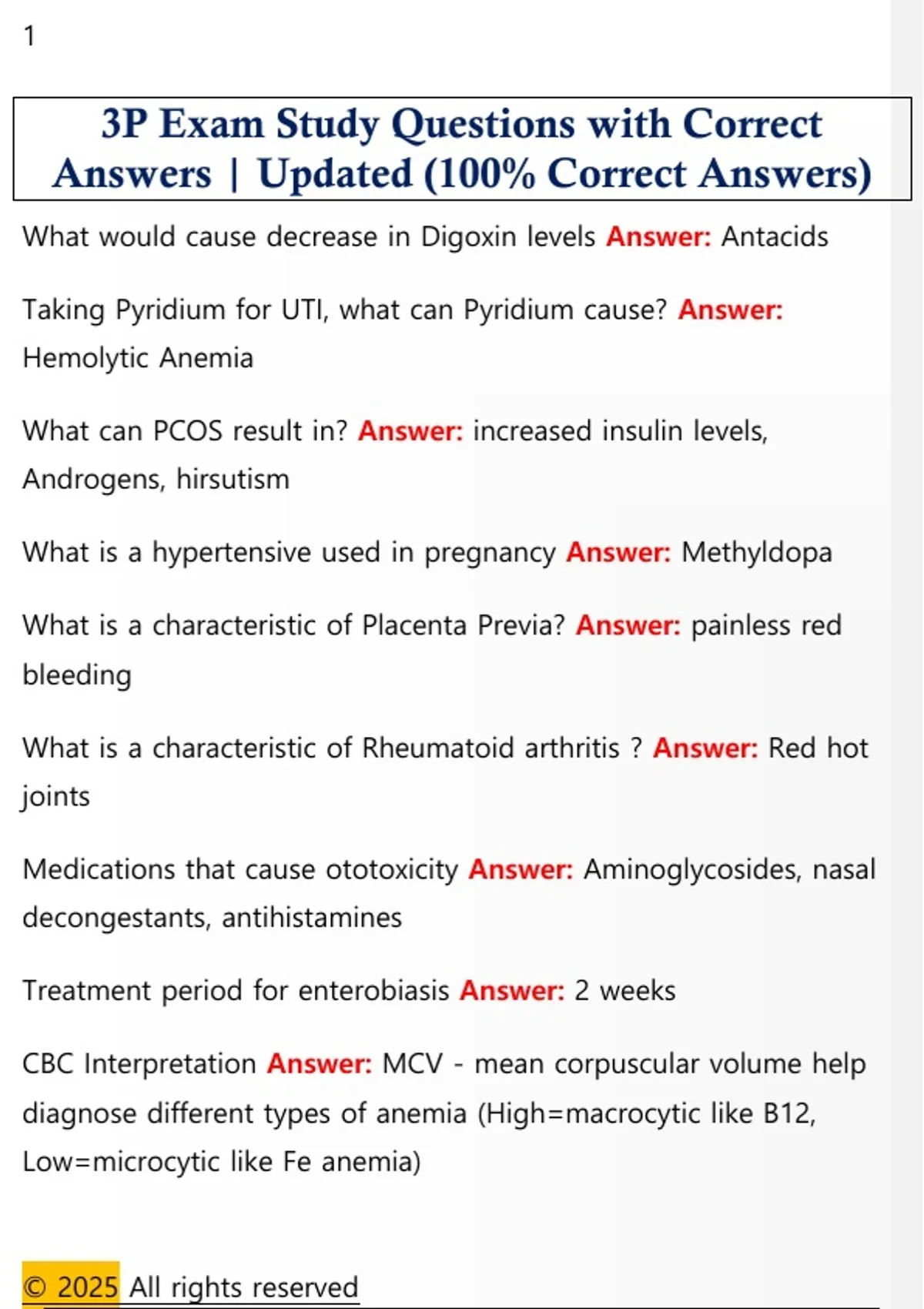 3P Exam Study Questions with Correct