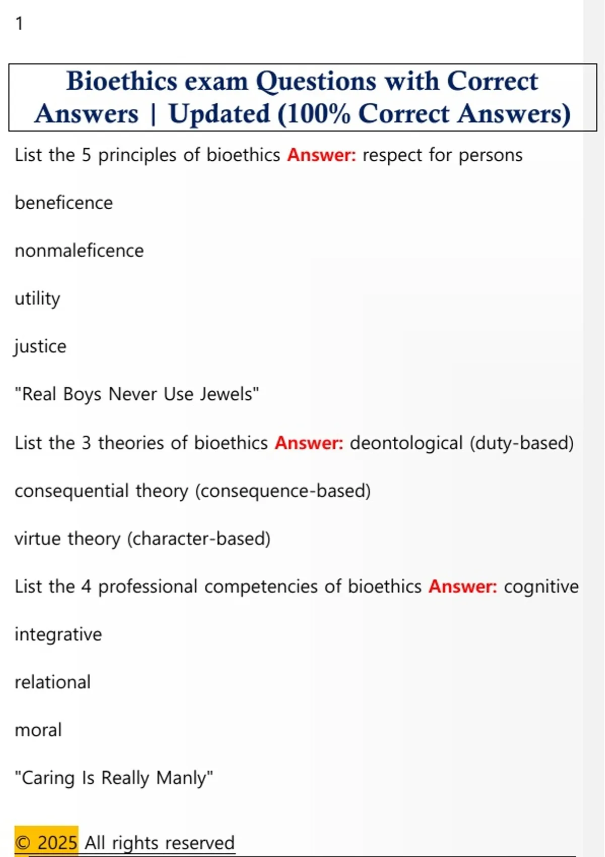 Bioethics exam Questions with Correct
