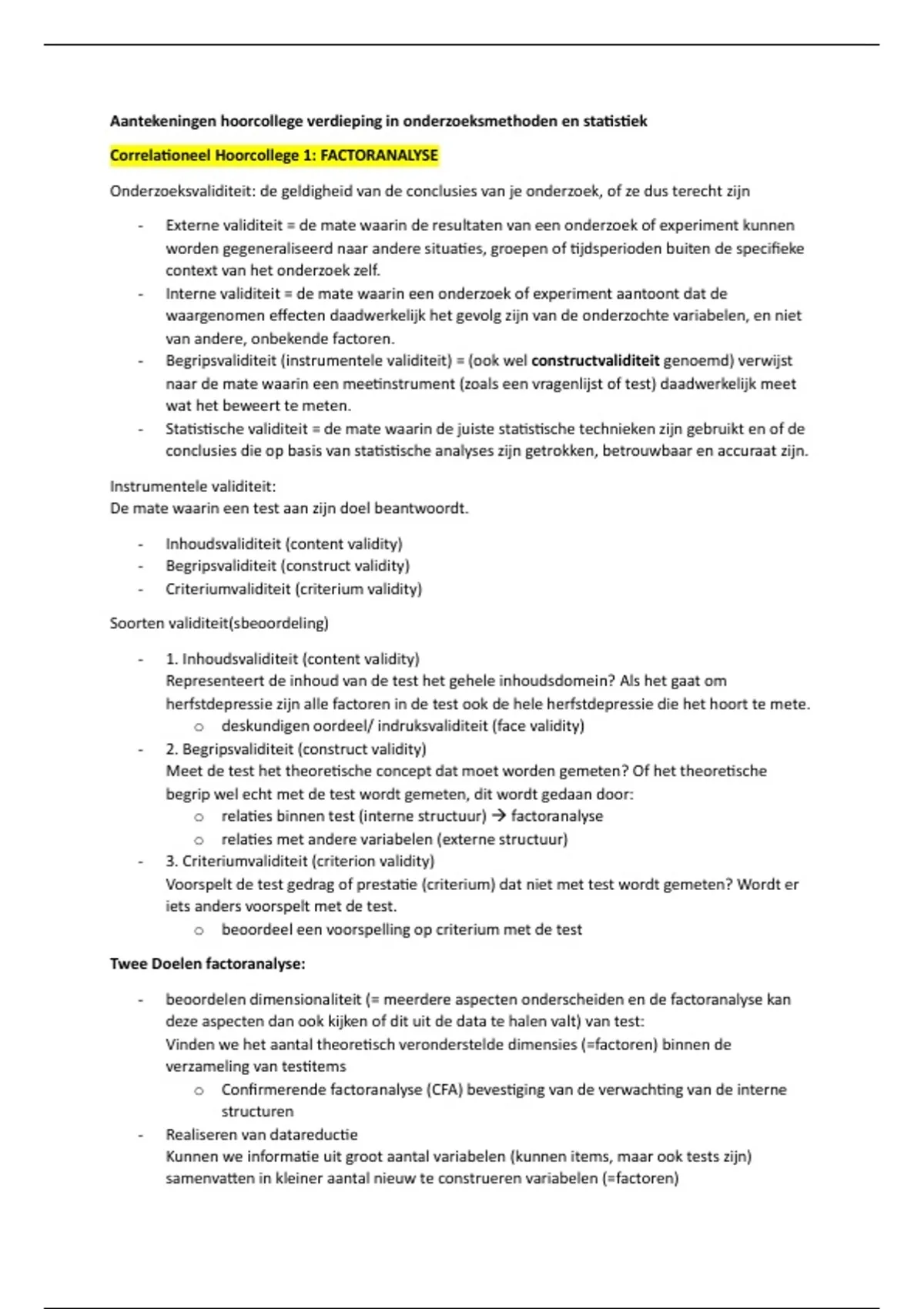 Aantekeningen hoorcollege verdieping in onderzoeksmethoden en statistiek