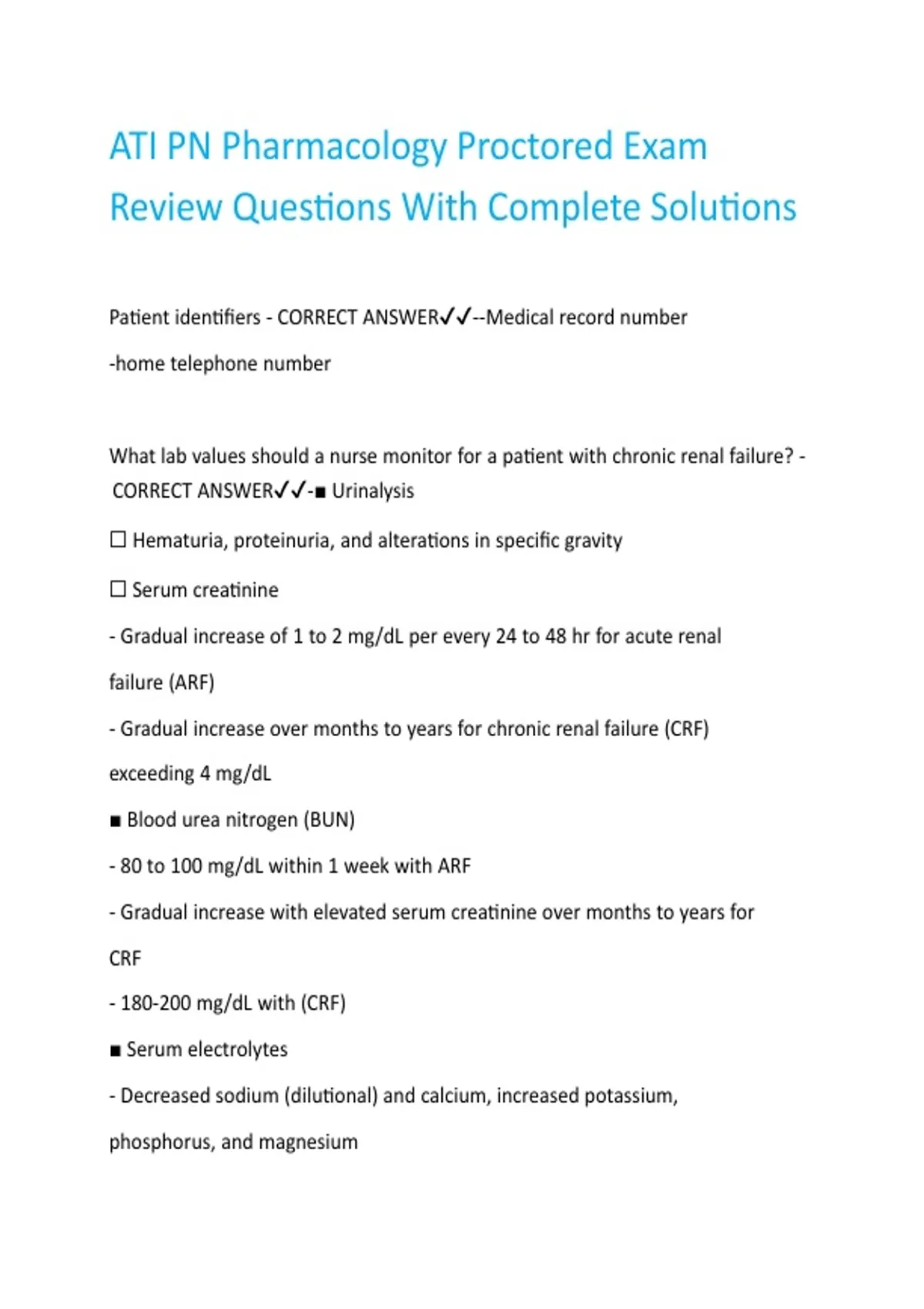 ATI PN Pharmacology Proctored Exam Review Questions With Complete Solutions