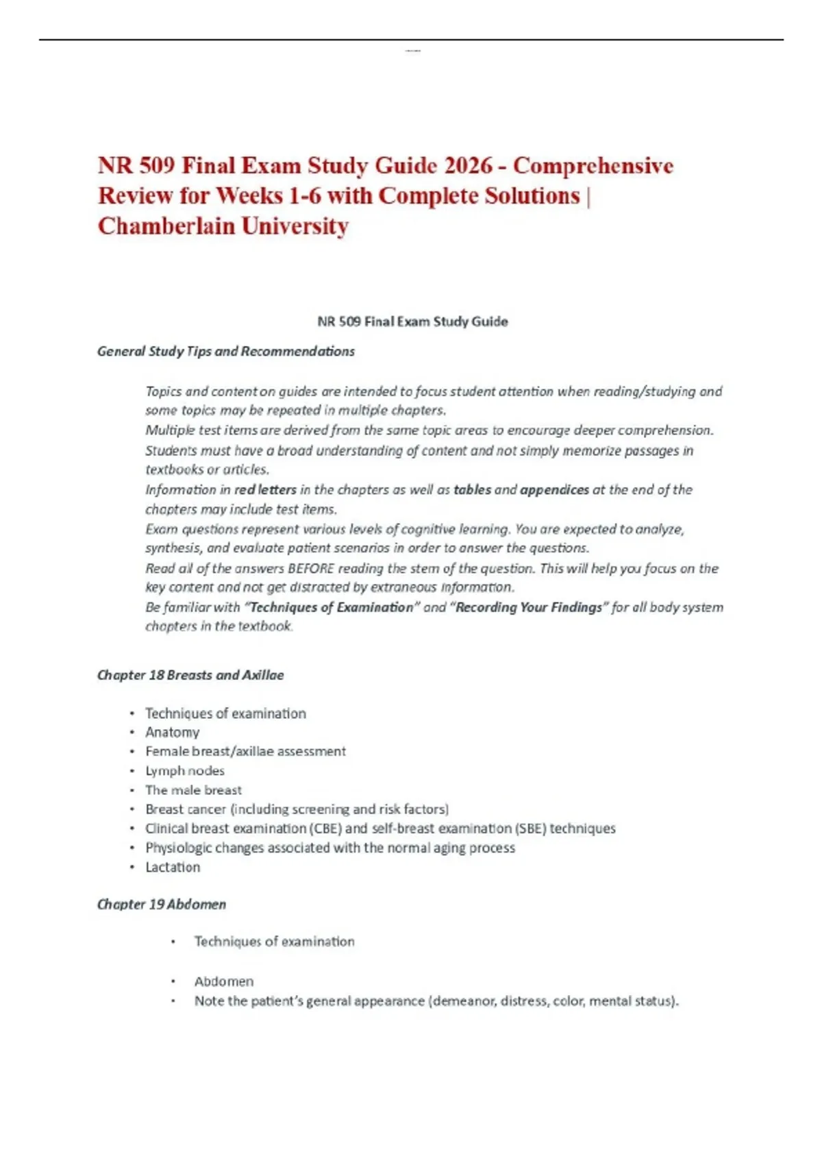 NR 509 Final Exam Study Guide 2026 - Comprehensive Review for Weeks 1-6 with Complete Solutions | Chamberlain University