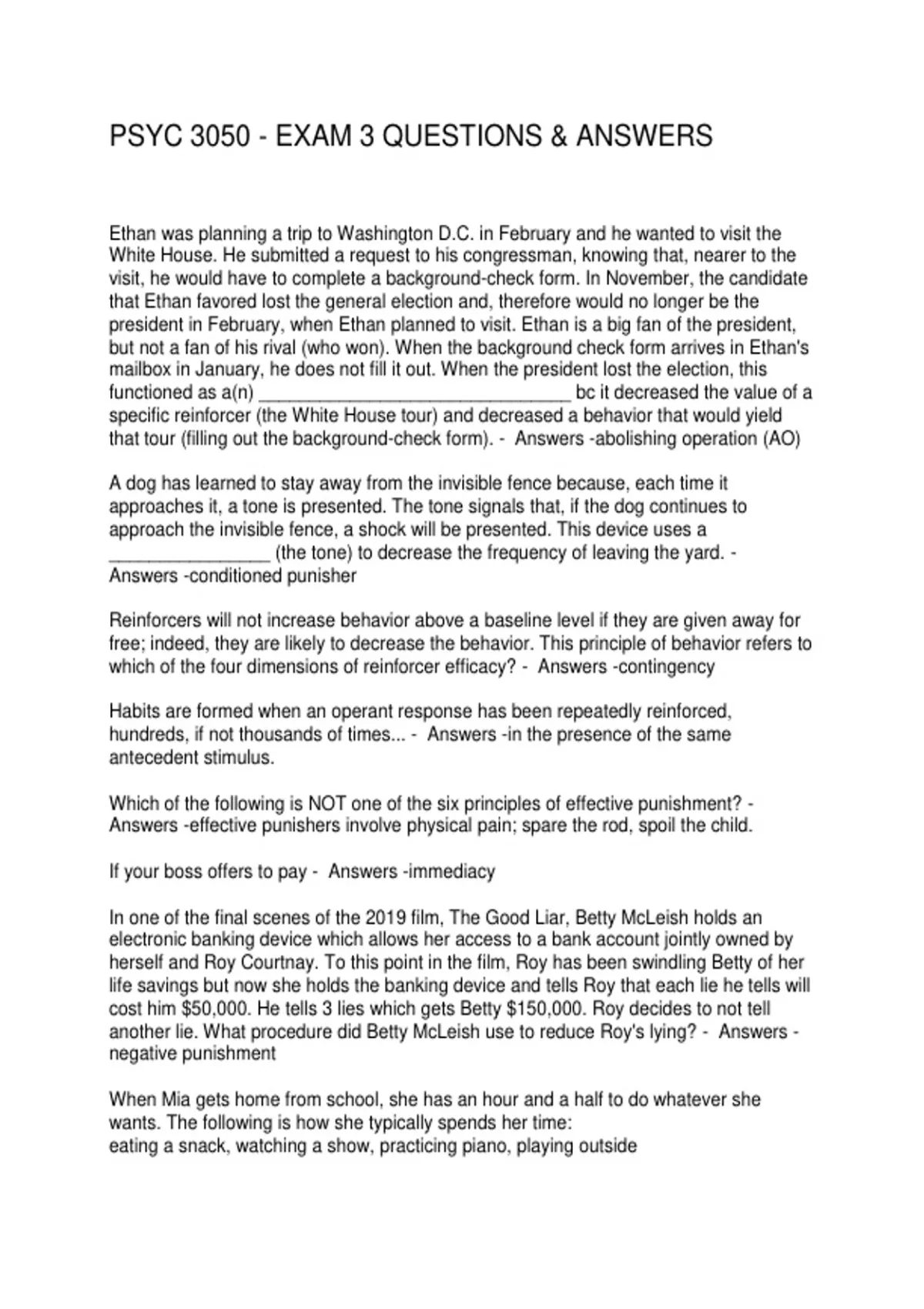 PSYC 3050 - EXAM 3 QUESTIONS & ANSWERS
