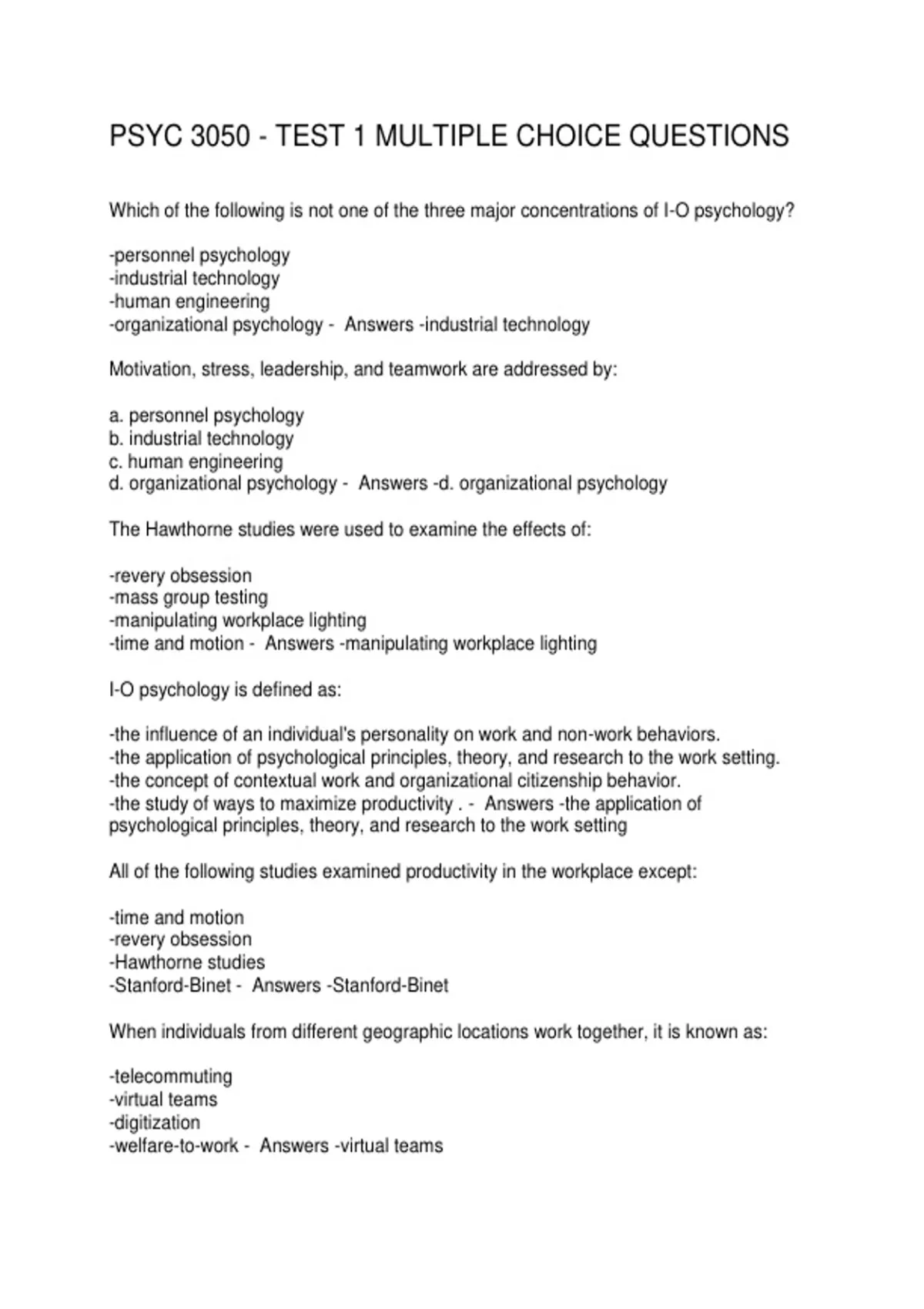 -organizational psychology - Answers -industrial technology