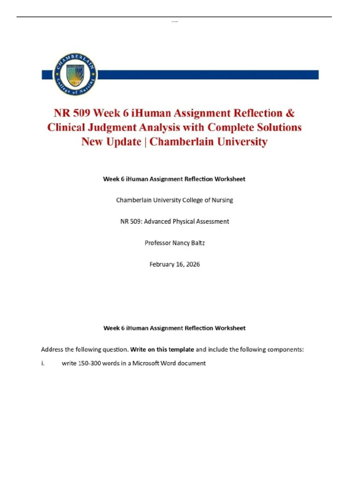 NR 509 Week 6 iHuman Assignment Reflection & Clinical Judgment Analysis with Complete Solutions New Update | Chamberlain University