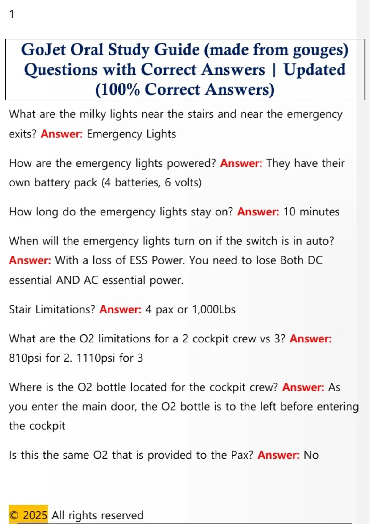 GoJet Oral Study Guide (made from gouges) Questions with Correct Answers | Updated (100% Correct Answers)
