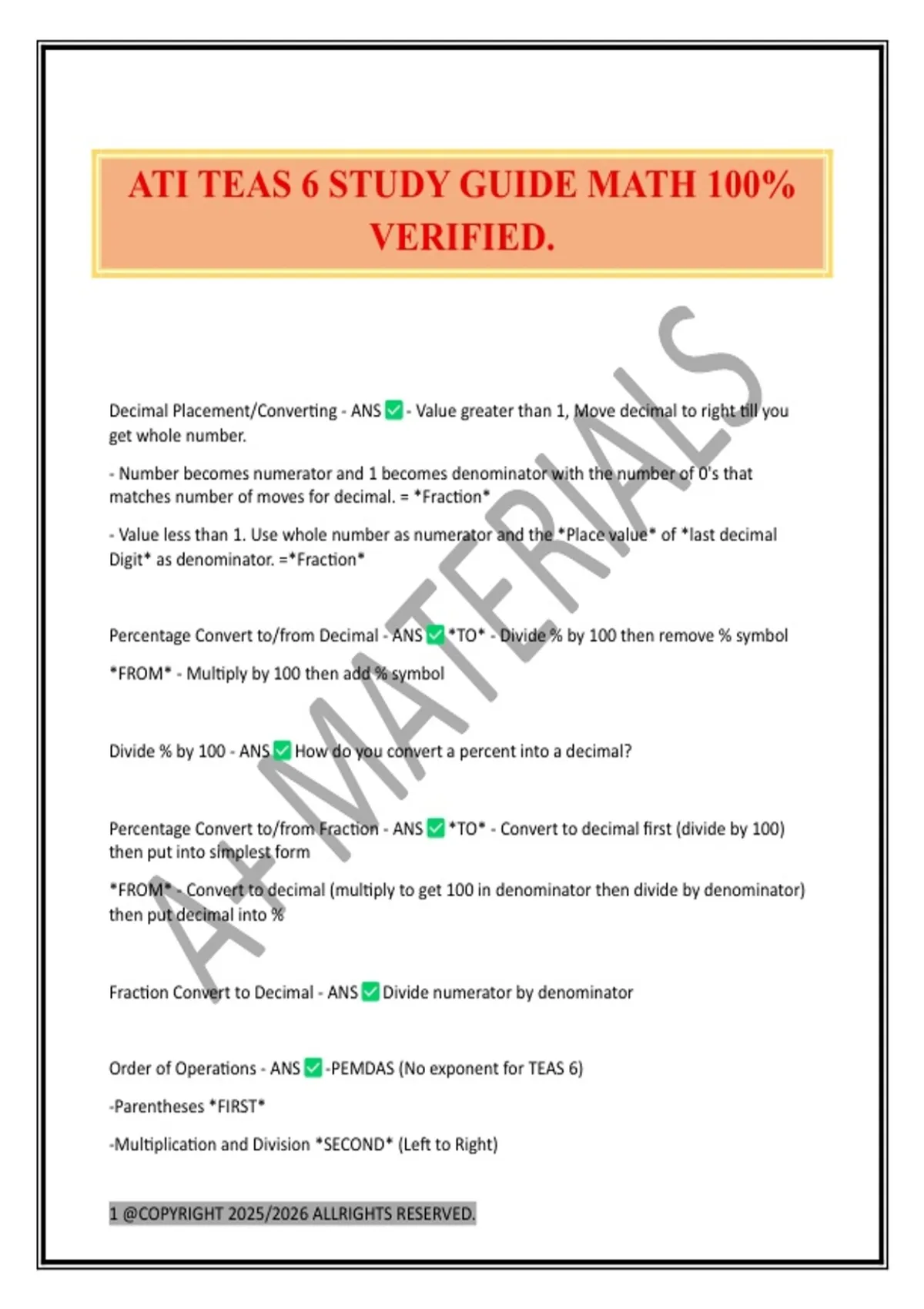ATI TEAS 6 STUDY GUIDE MATH 100%