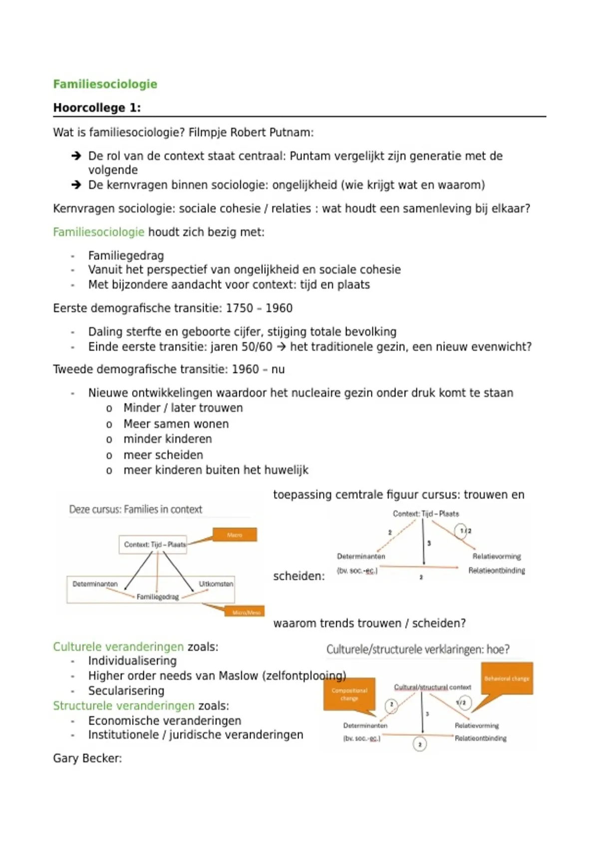 Complete overzichtelijke samenvatting van alle aantekeningen van de hoorcolleges van familiesociologie.