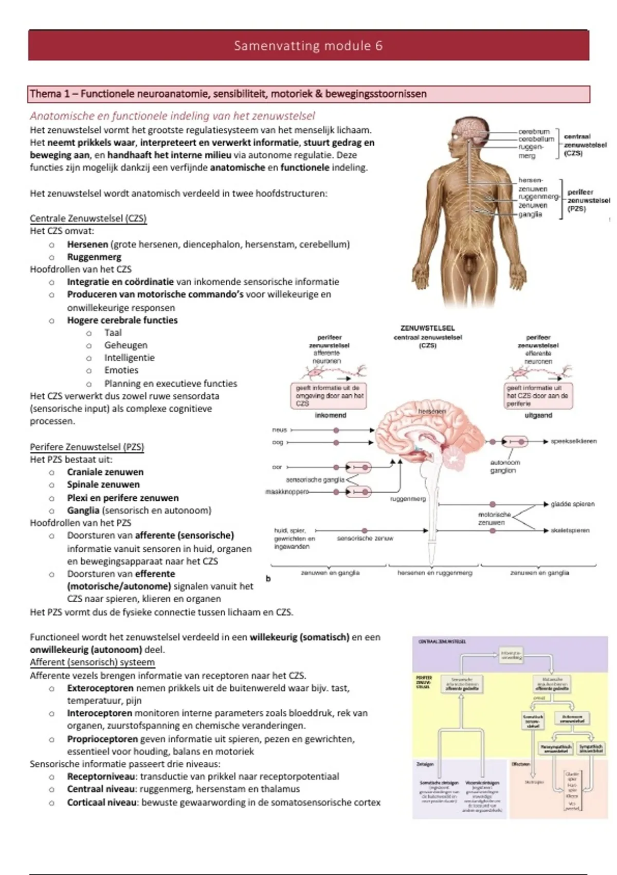 Thema 1 – Functionele neuroanatomie, sensibiliteit, motoriek & bewegingsstoornissen
