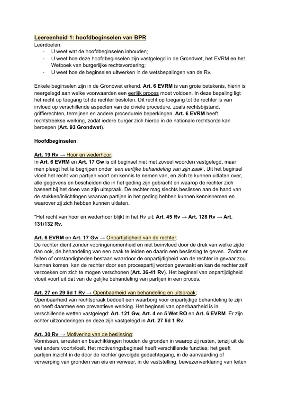 -​ U weet hoe de beginselen uitwerken in de wetsbepalingen van de Rv.