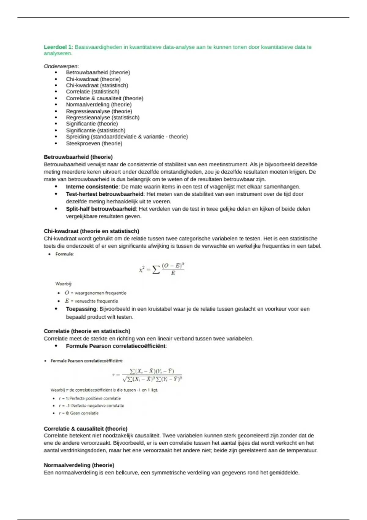 Leerdoel 1: Basisvaardigheden in kwantitatieve data-analyse aan te kunnen tonen door kwantitatieve data te
