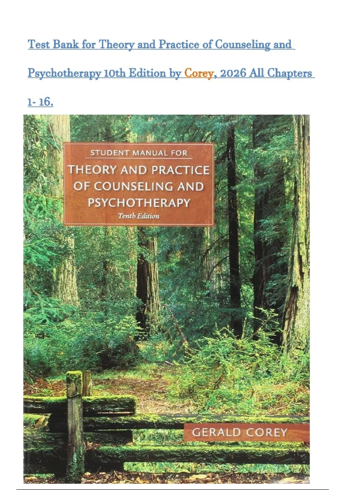 Test Bank for Theory and Practice of Counseling and Psychotherapy 10th Edition ( Corey, 2026) All Chapters 1- 16|| Latest Edition