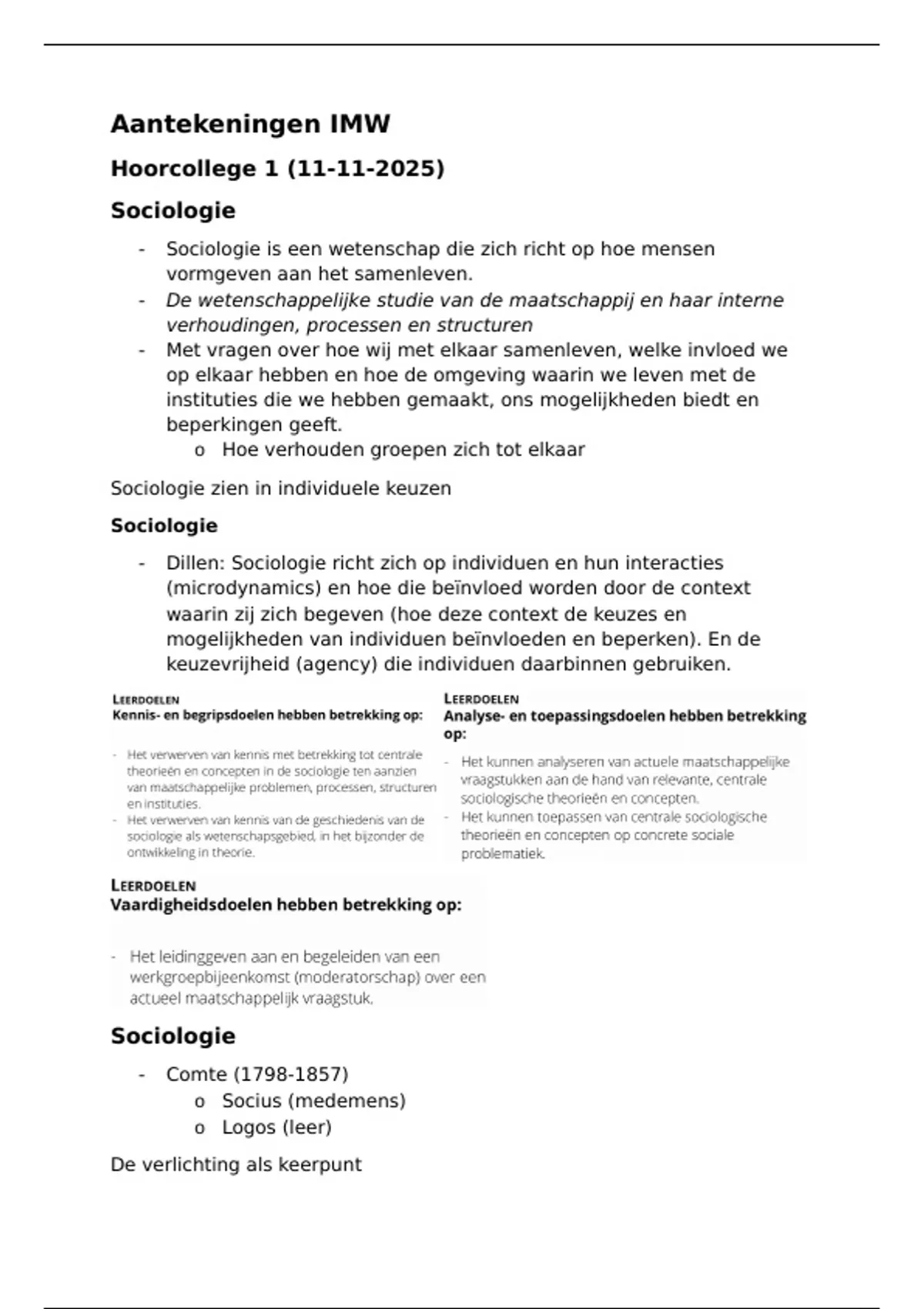 - Dillen: Sociologie richt zich op individuen en hun interacties