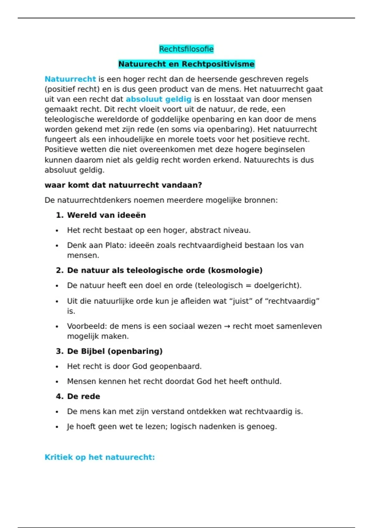 Leerdoel 2: de student kan kritiek op natuurrecht uiteenzetten.