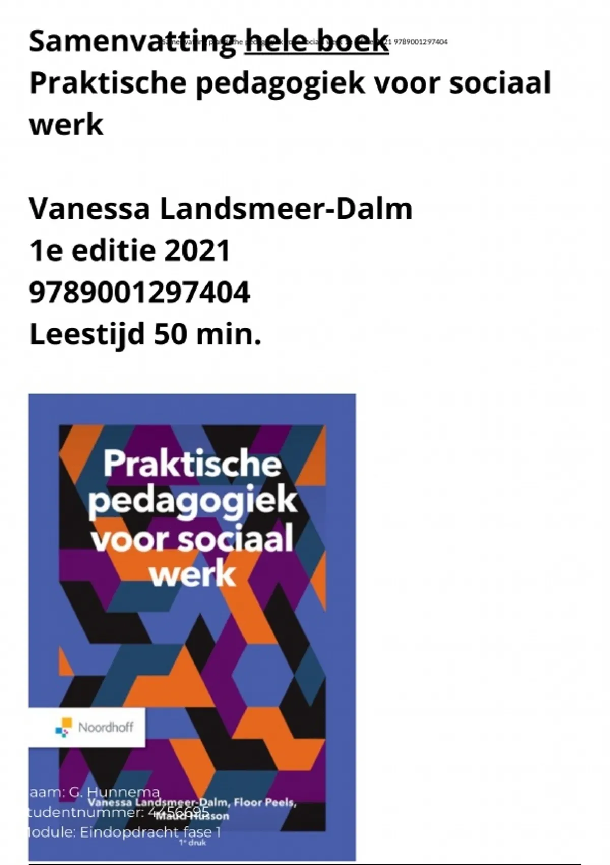 ,Samenvatting praktische pedagogiek voor sociaal werk 1e editie 2021 9789001297404