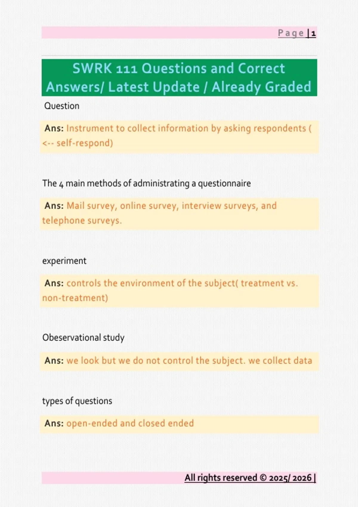 SWRK 111 Questions and Correct