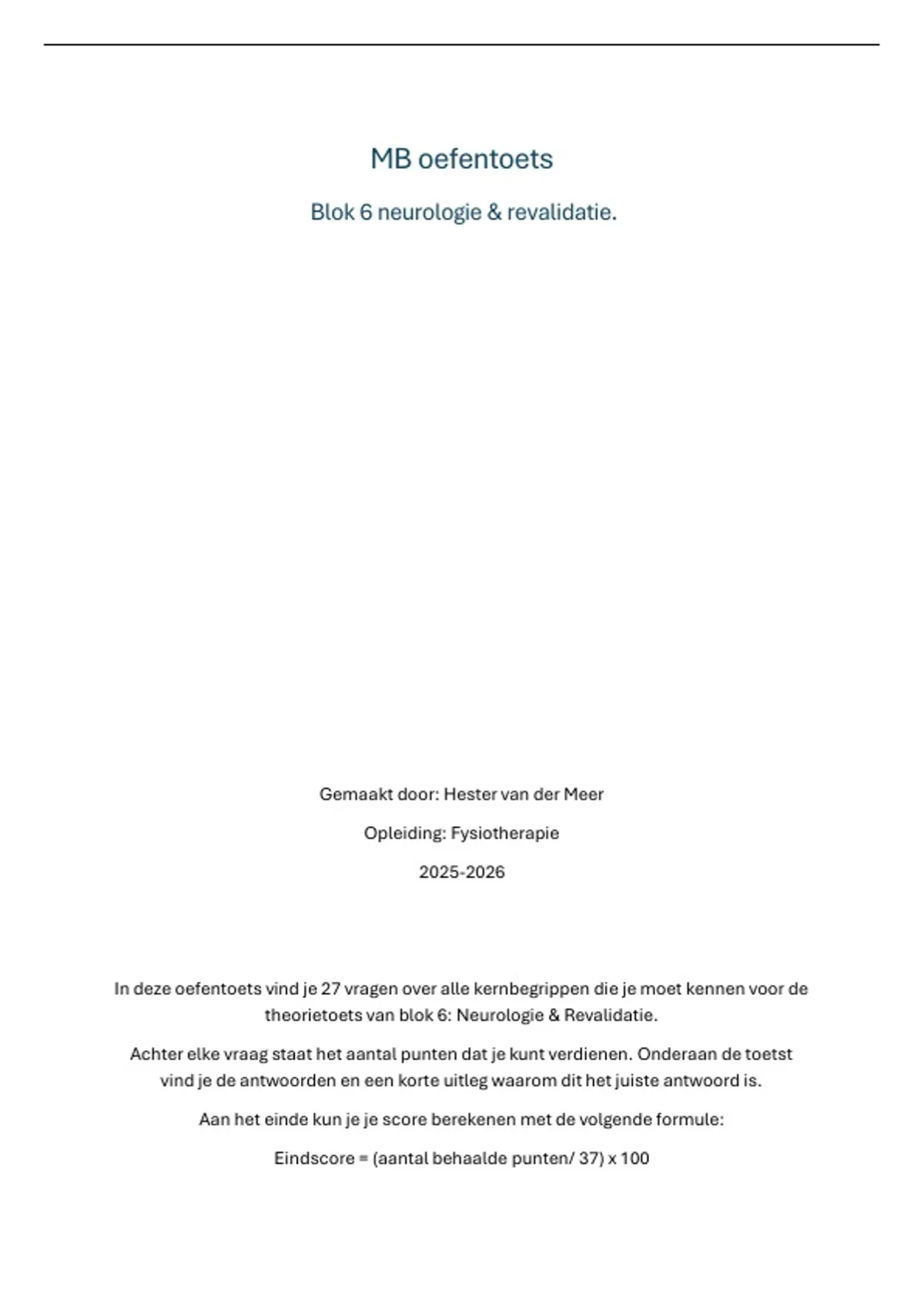 theorietoets van blok 6: Neurologie & Revalidatie.