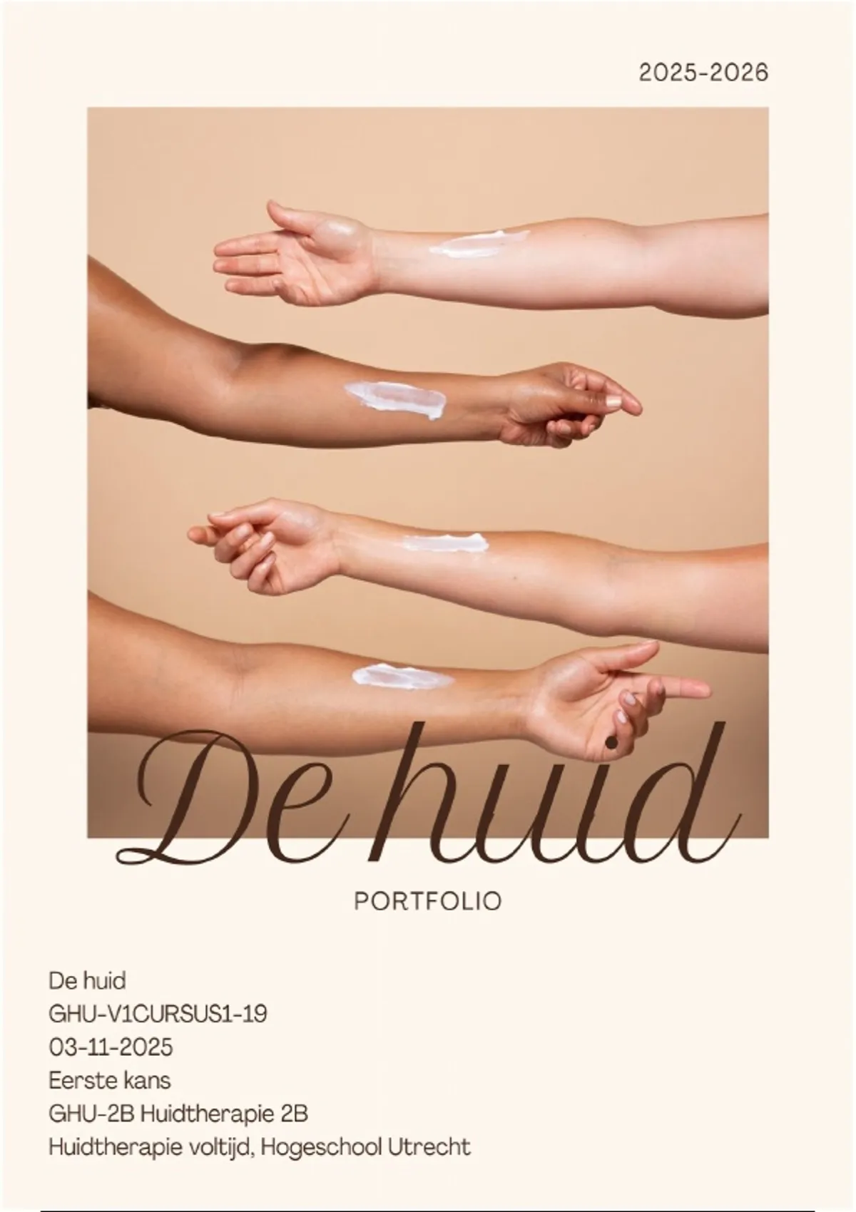 Dit is mijn portfolio van de cursus de huid. Dit verslag heb ik in mijn tweede jaar van de studie Huidtherapie geschreven, aangezien ik in mijn eerste jaar vergeten was om mij in te schrijven voor de herkansing. Het HMH heb ik uitgewerkt op basis van casus 4: patiënt met overbeharing door ciclosporine. Daarnaast staat alles in dit document inclusief de EPB-zoekopdracht. Je kan dit verslag super goed gebruiken als inspiratie en dan haal je 100% een voldoende! Successss :)