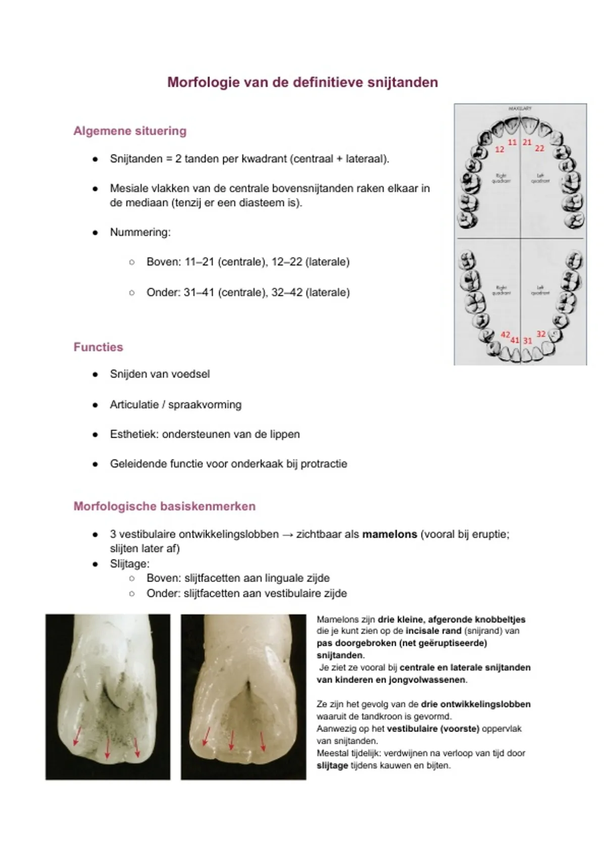 ● Snijtanden = 2 tanden per kwadrant (centraal + lateraal).