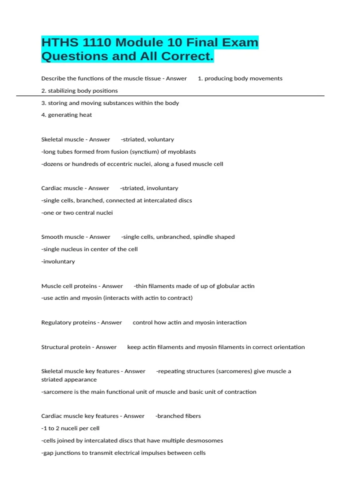 Describe the functions of the muscle tissue - Answer 1. producing body movements