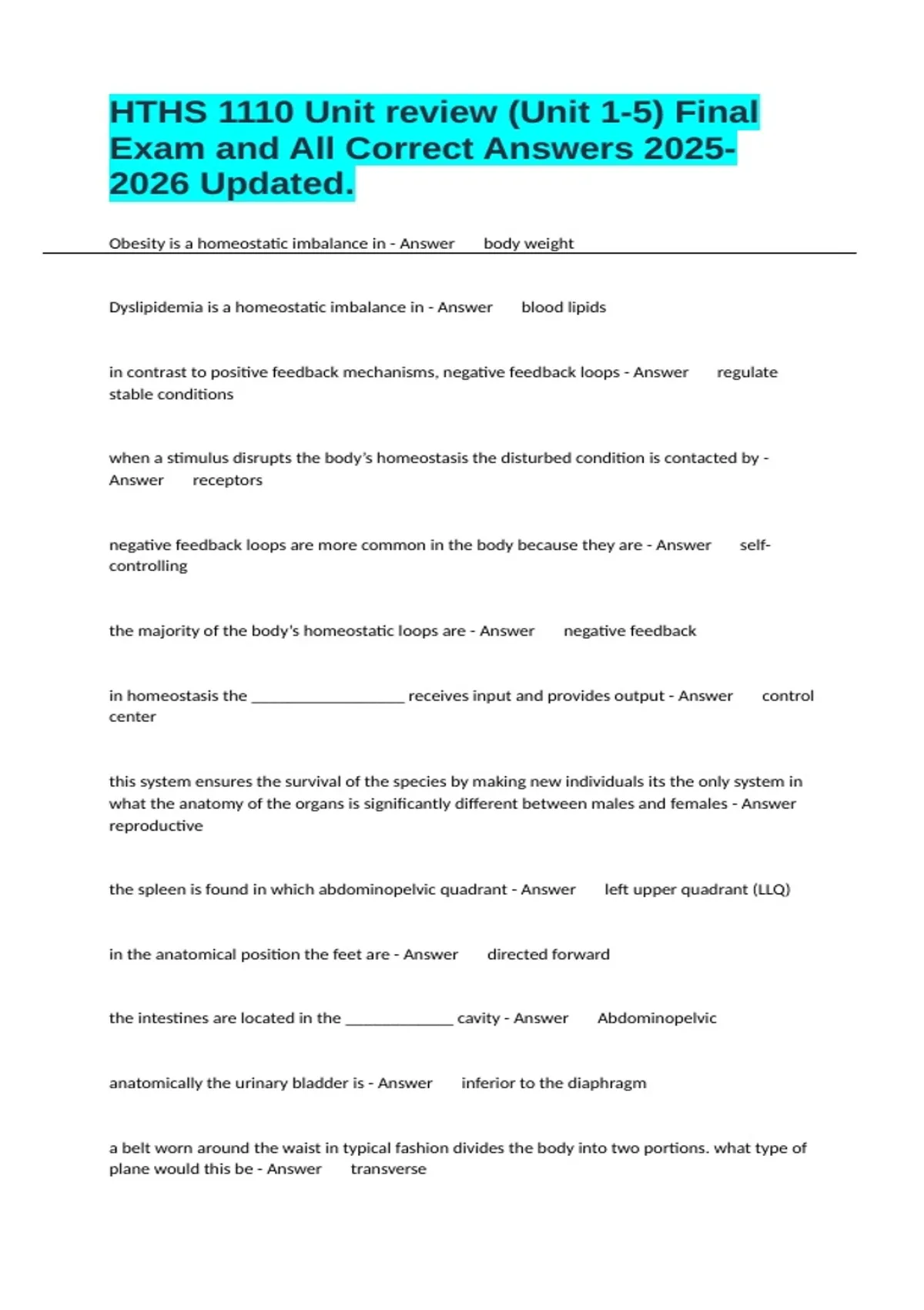 Exam and All Correct Answers 2025-