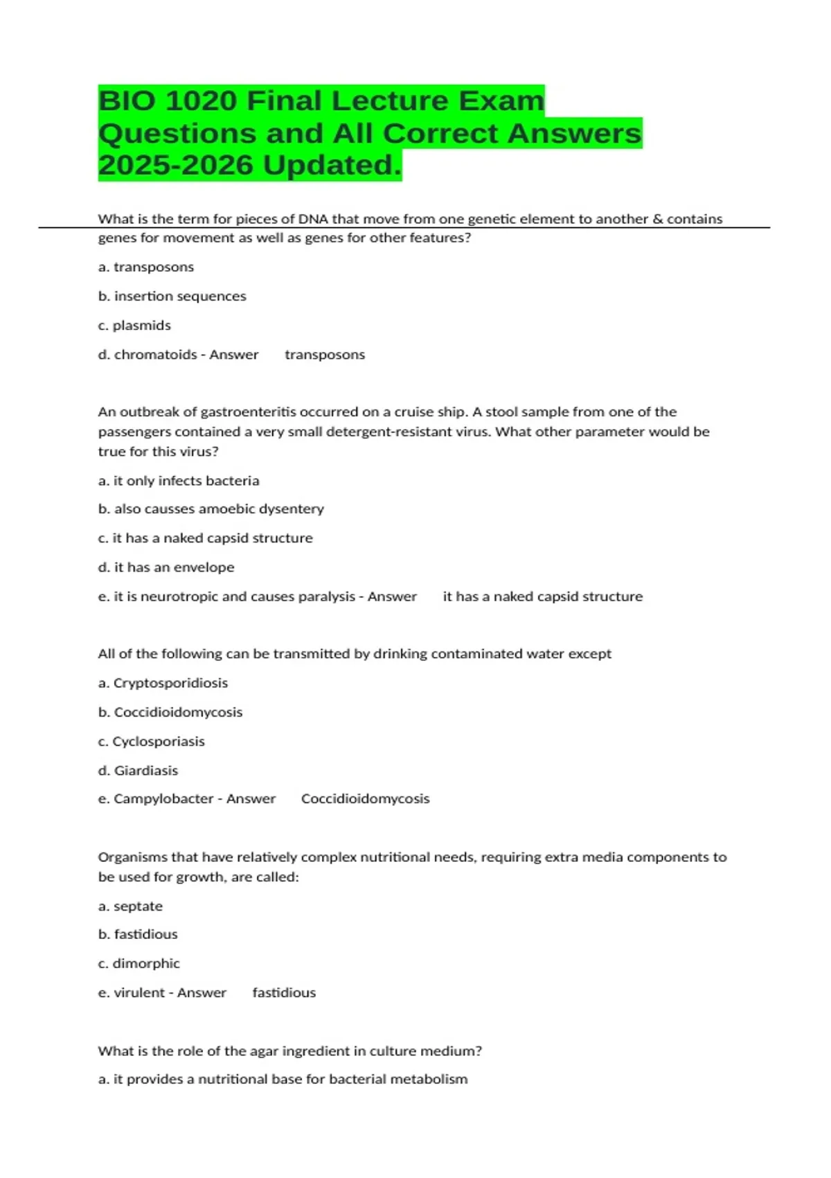 Questions and All Correct Answers