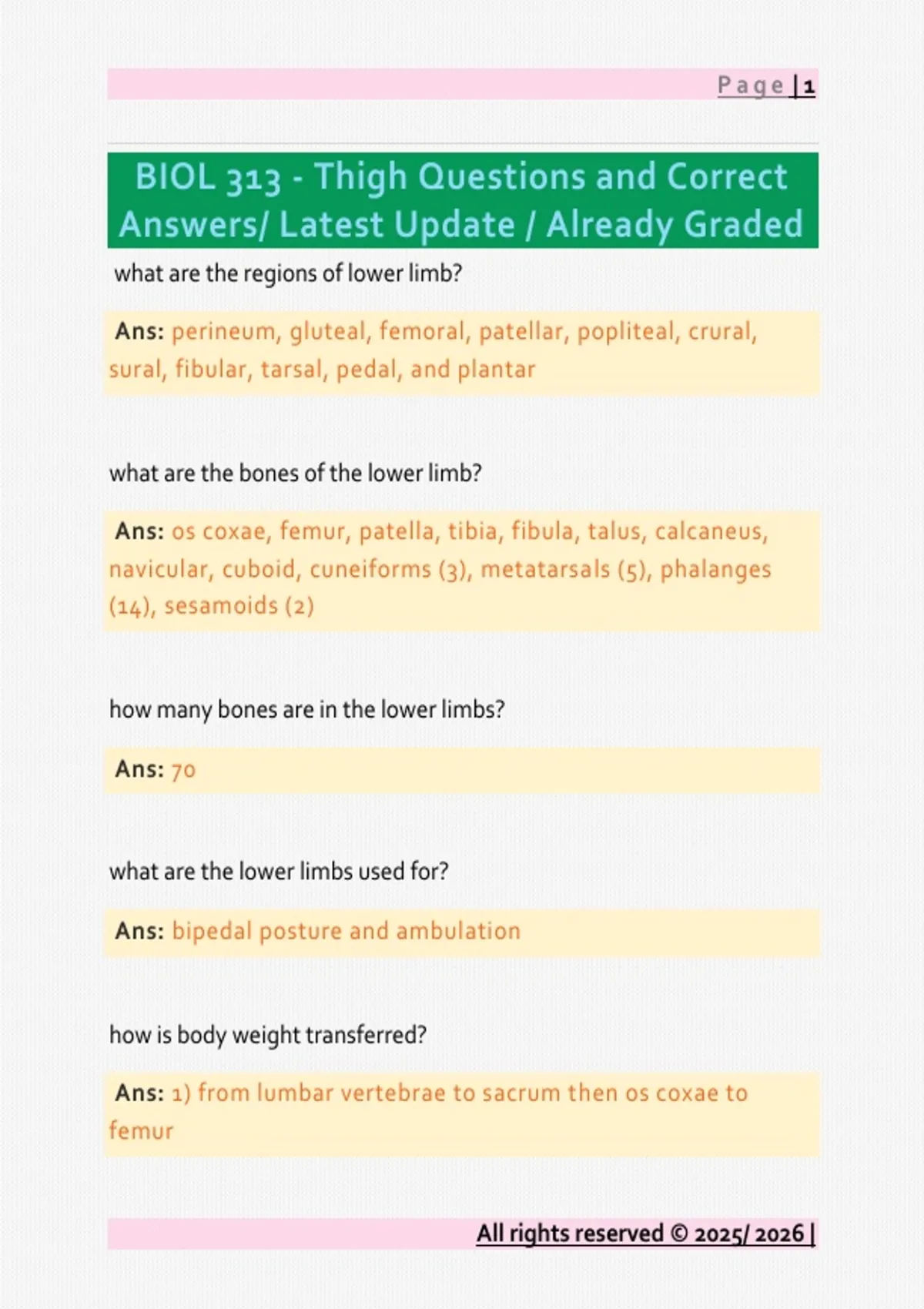 BIOL 313 - Thigh Questions and Correct