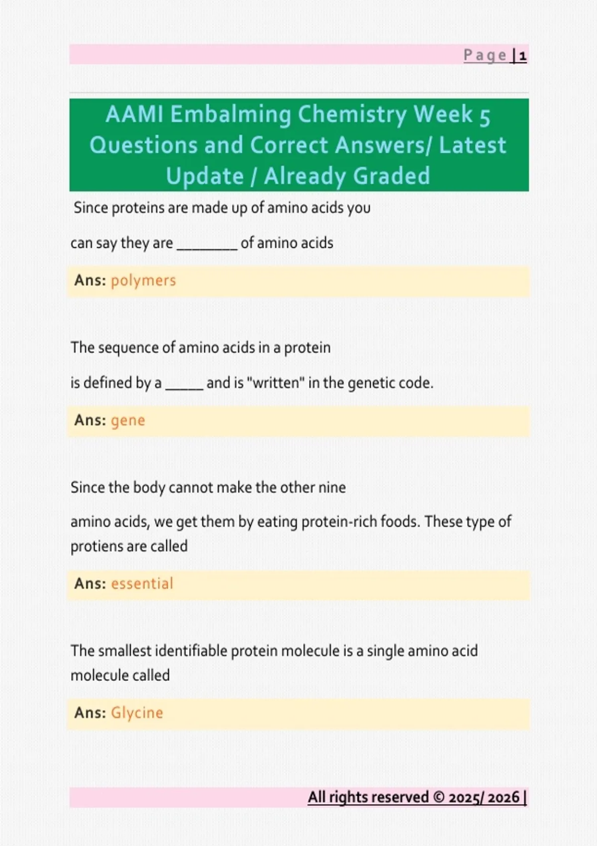 Questions and Correct Answers/ Latest