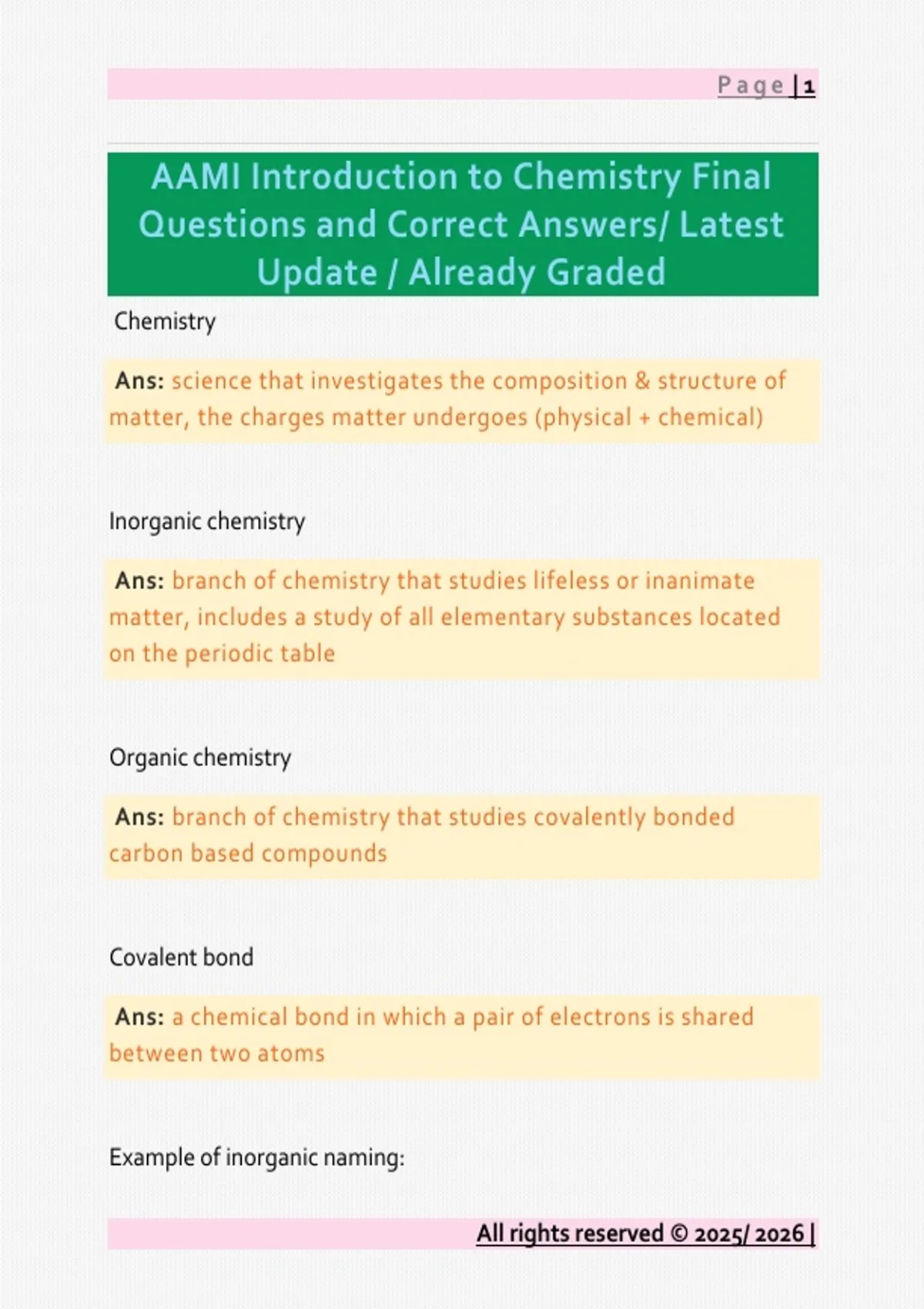 AAMI Introduction to Chemistry Final