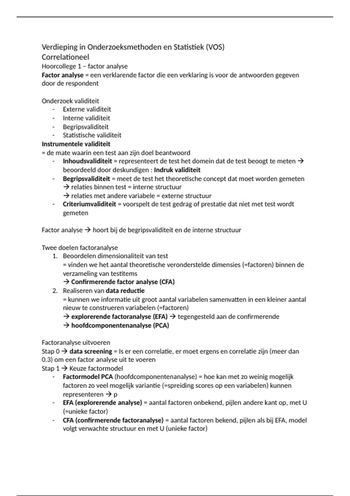 Factor analyse  hoort bij de begripsvaliditeit en de interne structuur