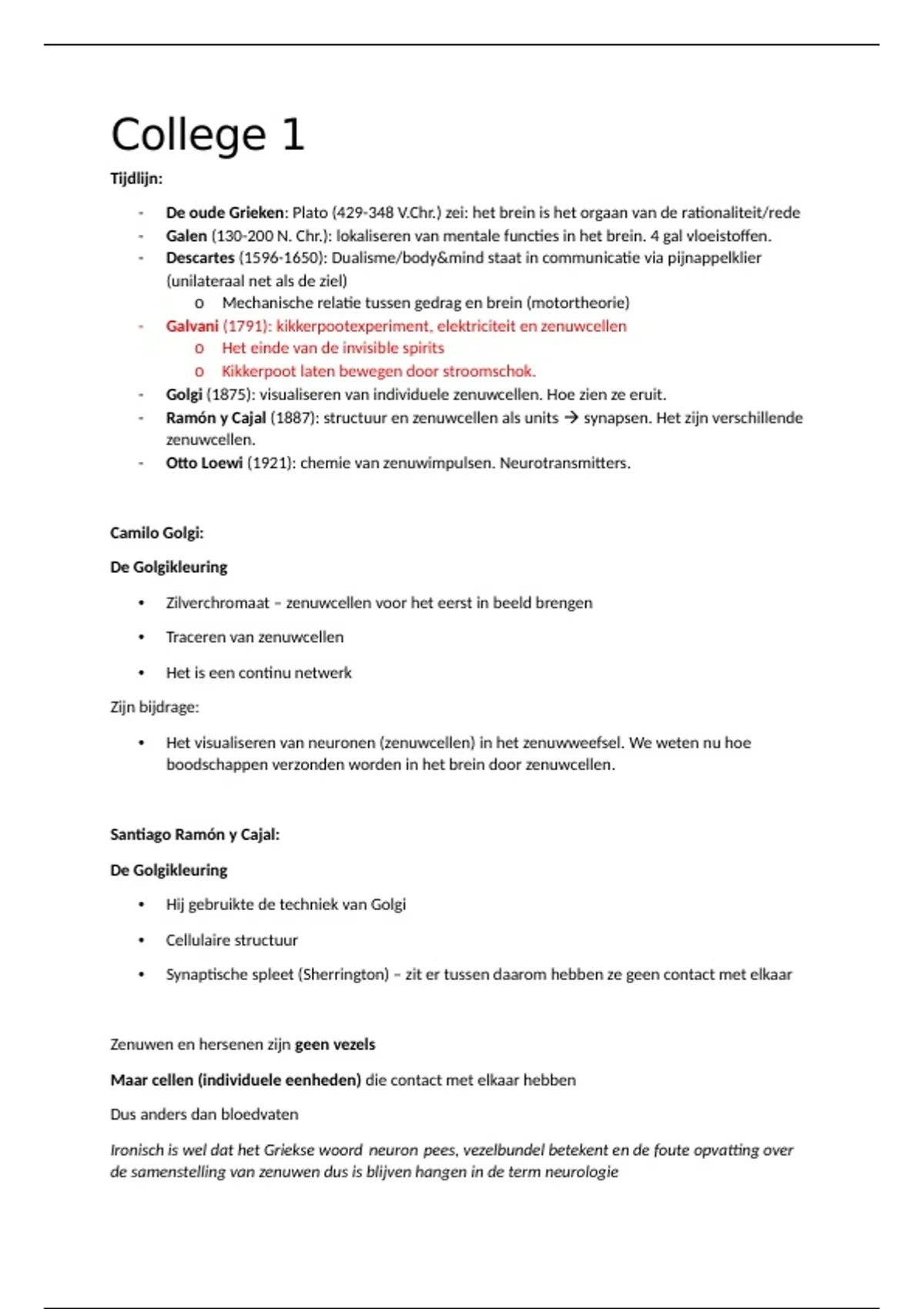 - Ramón y Cajal (1887): structuur en zenuwcellen als units  synapsen. Het zijn verschillende