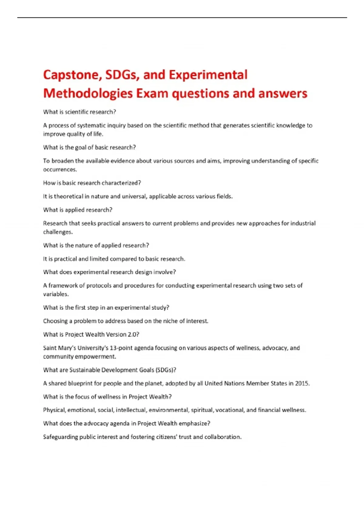 Capstone, SDGs, and Experimental Methodologies Exam questions and answers