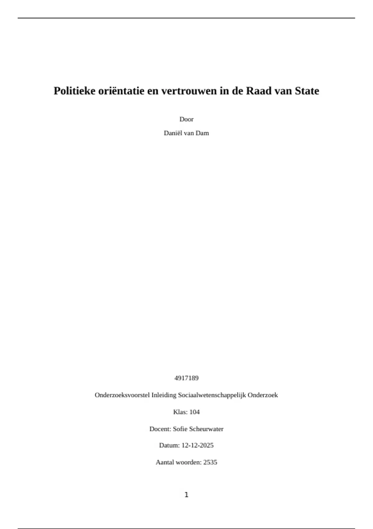 Onderzoeksvoorstel Inleiding Sociaalwetenschappelijk Onderzoek