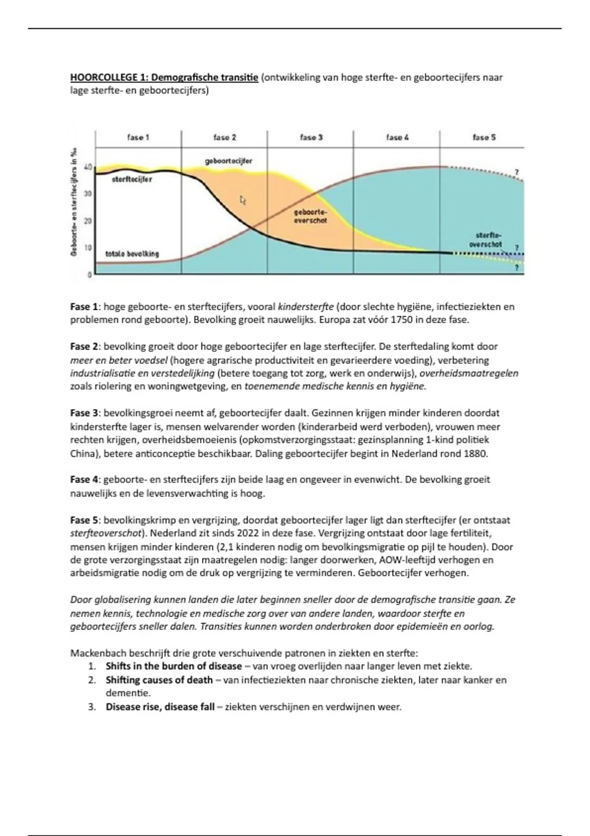 Mackenbach beschrijft drie grote verschuivende patronen in ziekten en sterfte: