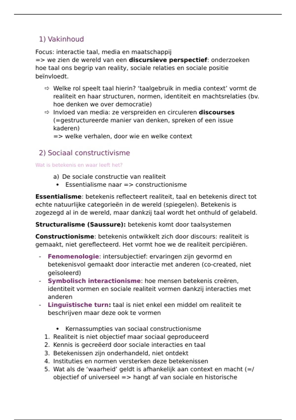 realiteit en haar structuren, normen, identiteit en machtsrelaties (bv.