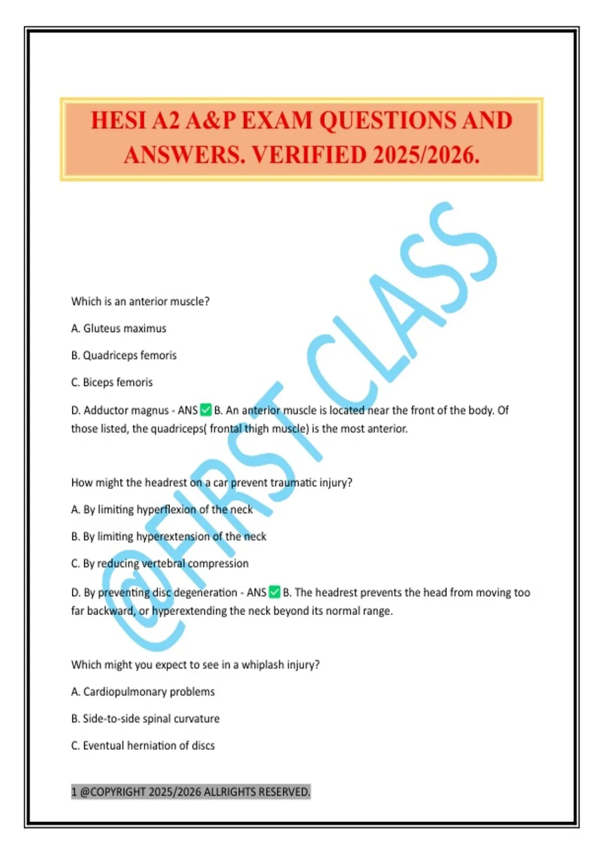 HESI A2 A&P EXAM QUESTIONS AND ANSWERS. VERIFIED 2025/2026.