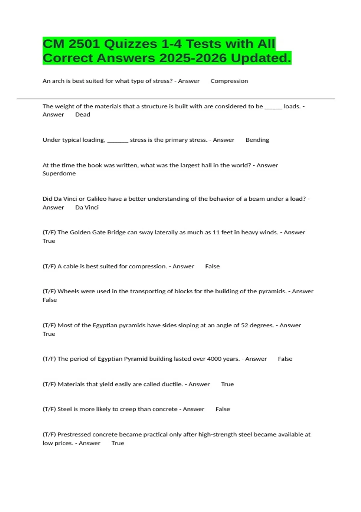 CM 2501 Quizzes 1-4 Tests with All Correct Answers Updated.