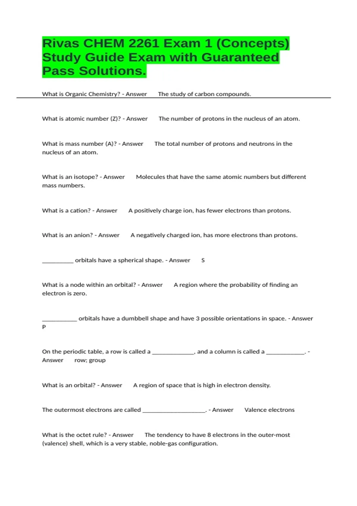 Study Guide Exam with Guaranteed
