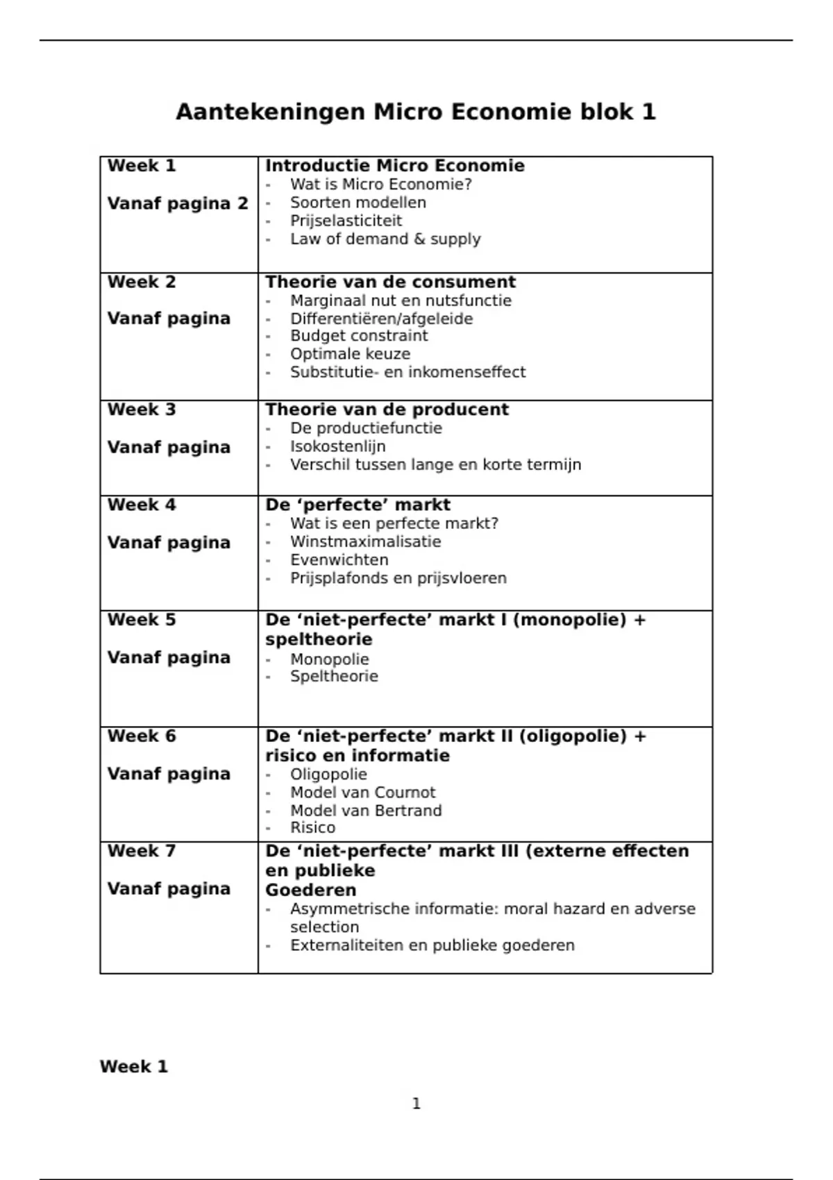 Week 6 De ‘niet-perfecte’ markt II (oligopolie) +