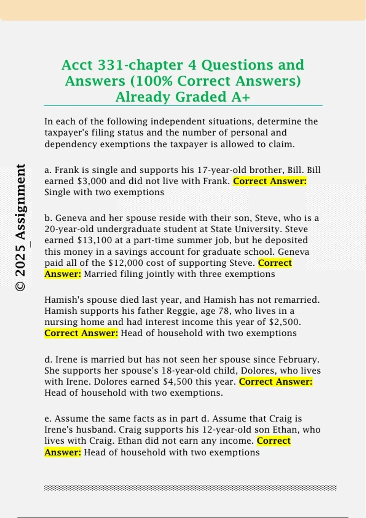 Acct 331-chapter 4 Questions and Answers (100% Correct Answers) Already Graded A+