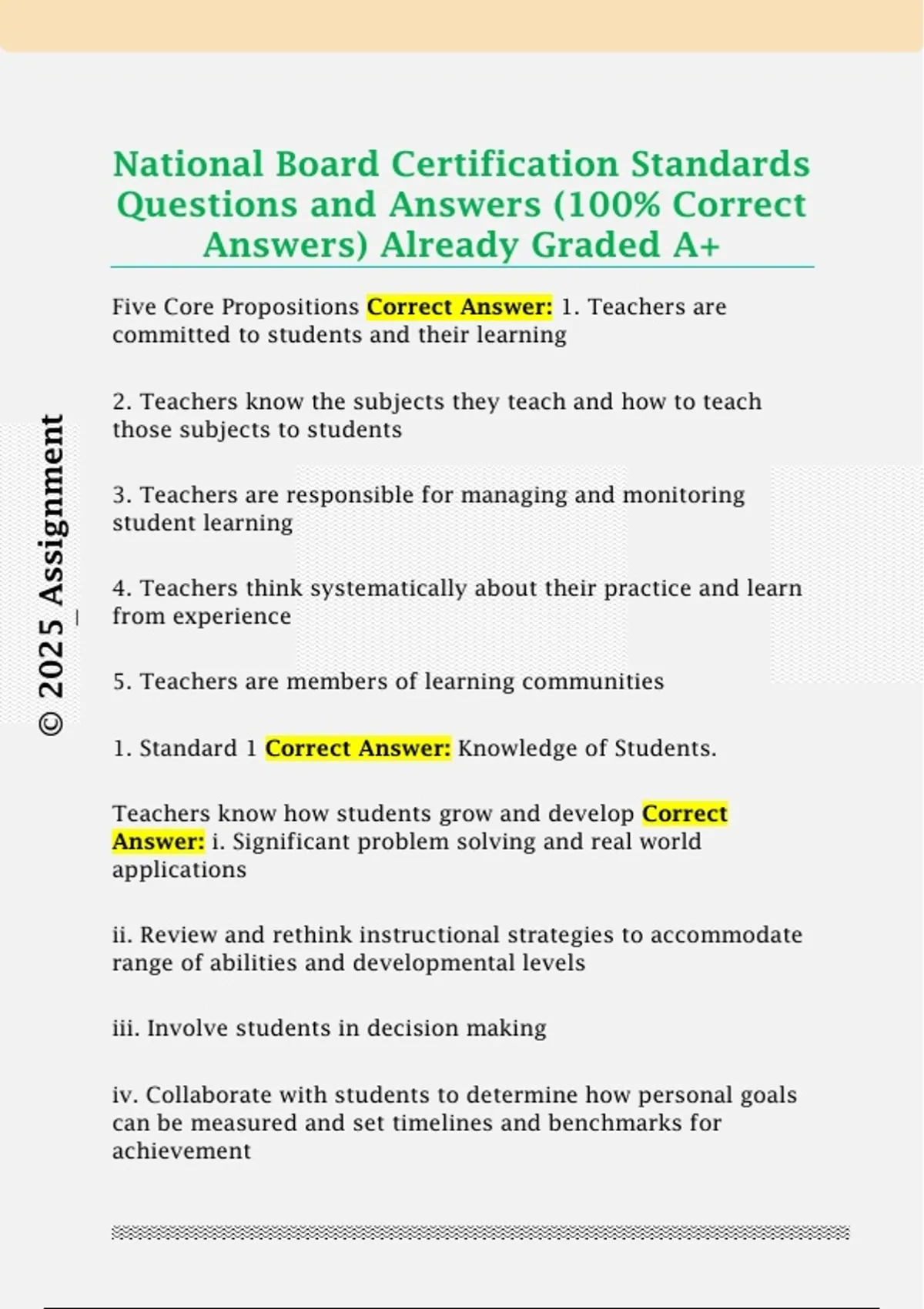 National Board Certification Standards Questions and Answers (100% Correct Answers) Already Graded A+