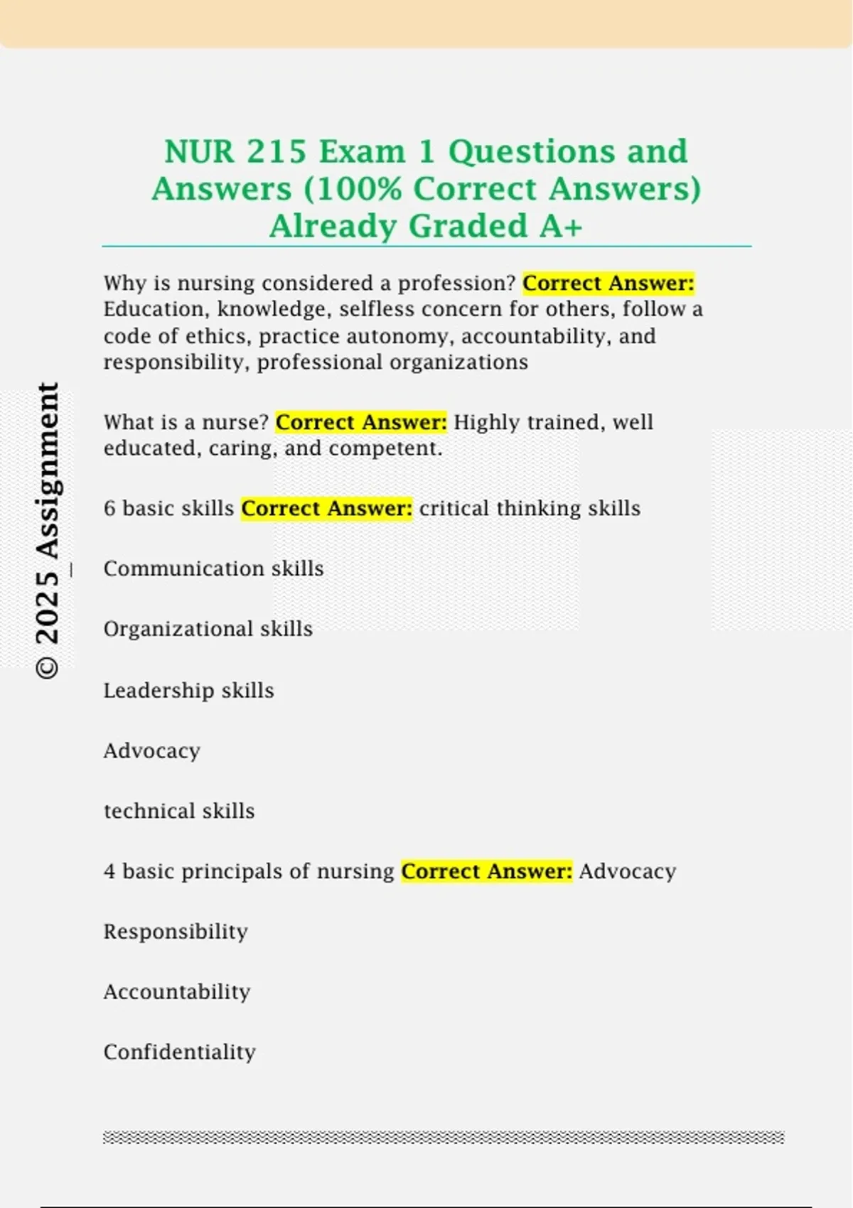 NUR 215 Exam 1 Questions and