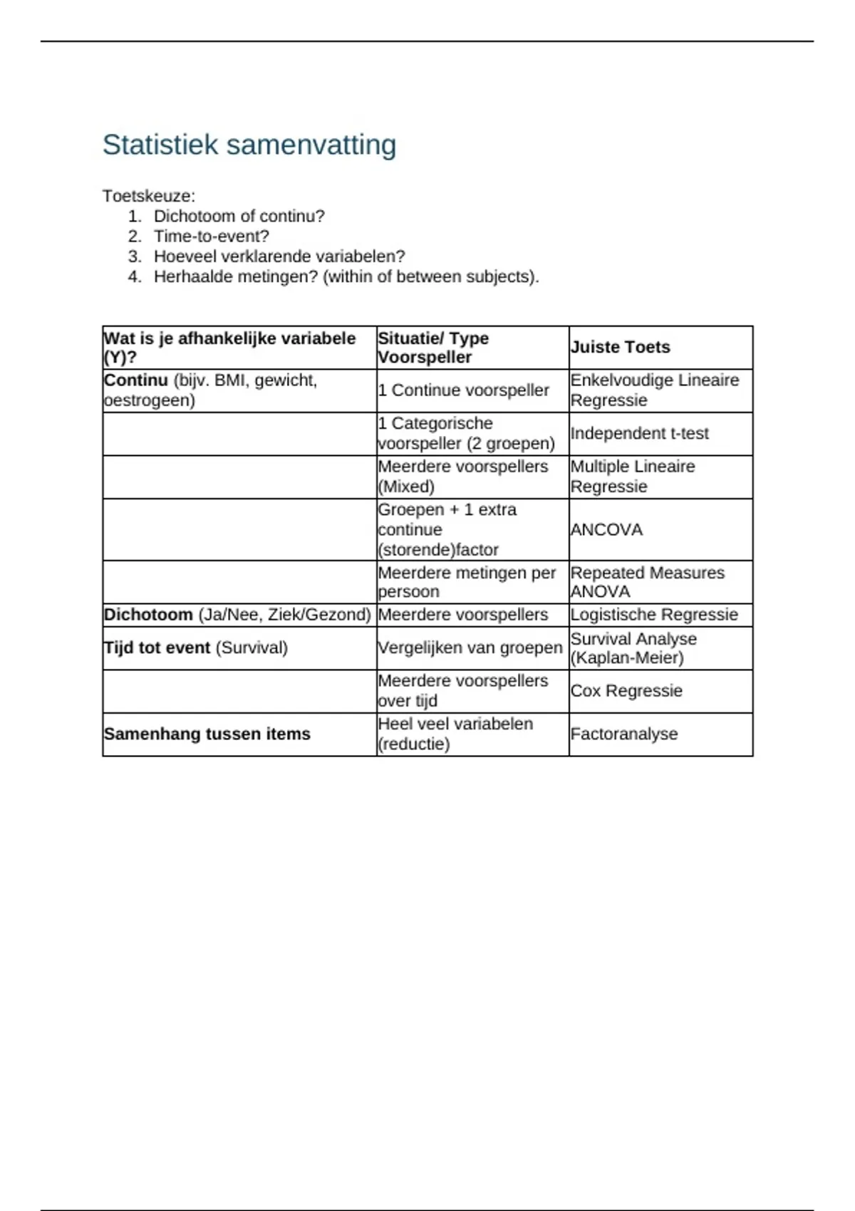 Statistiek samenvatting